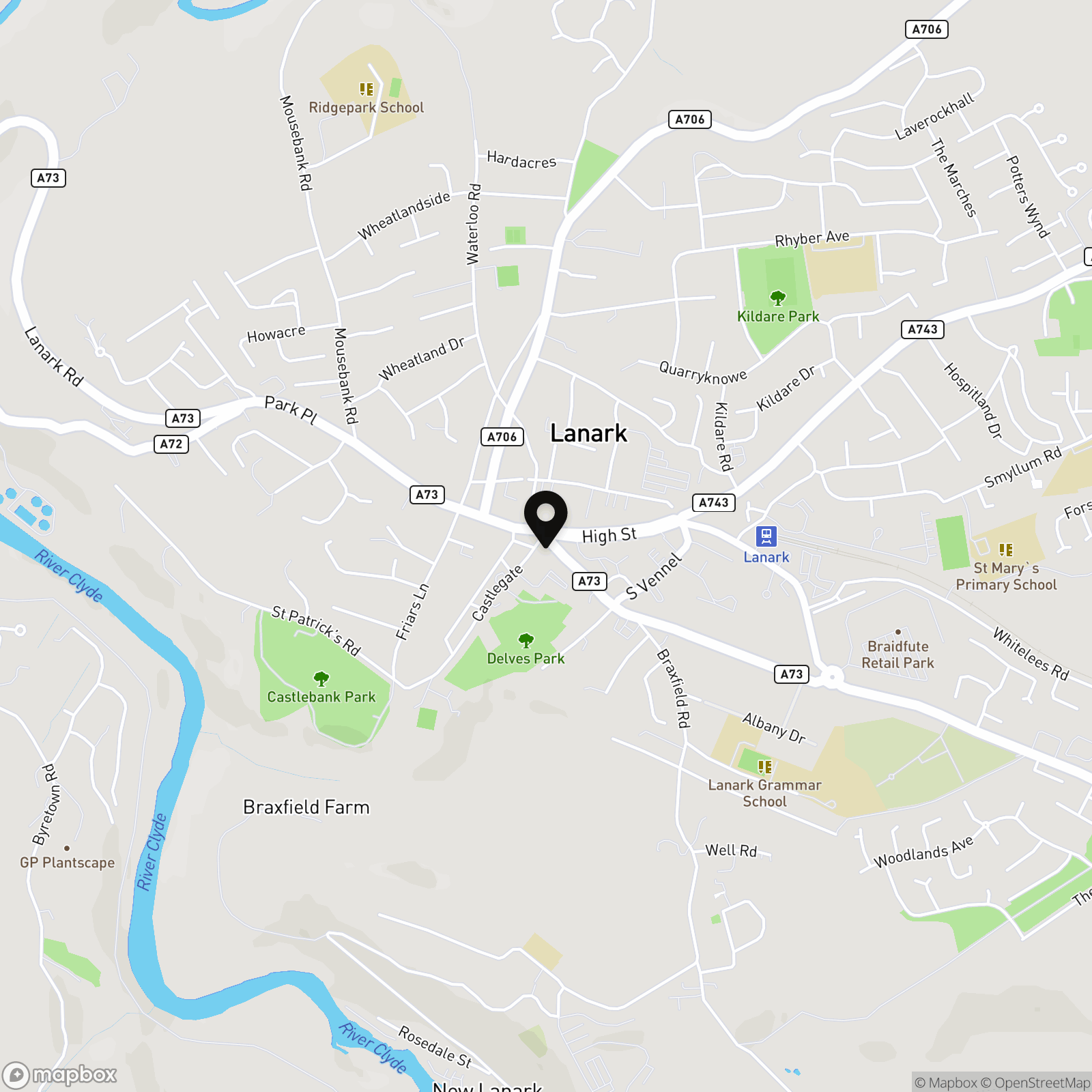 From our office at 2 High Street, Lanark, cross over the Wellgate onto Castlegate and Wallace House can be found directly on the left.