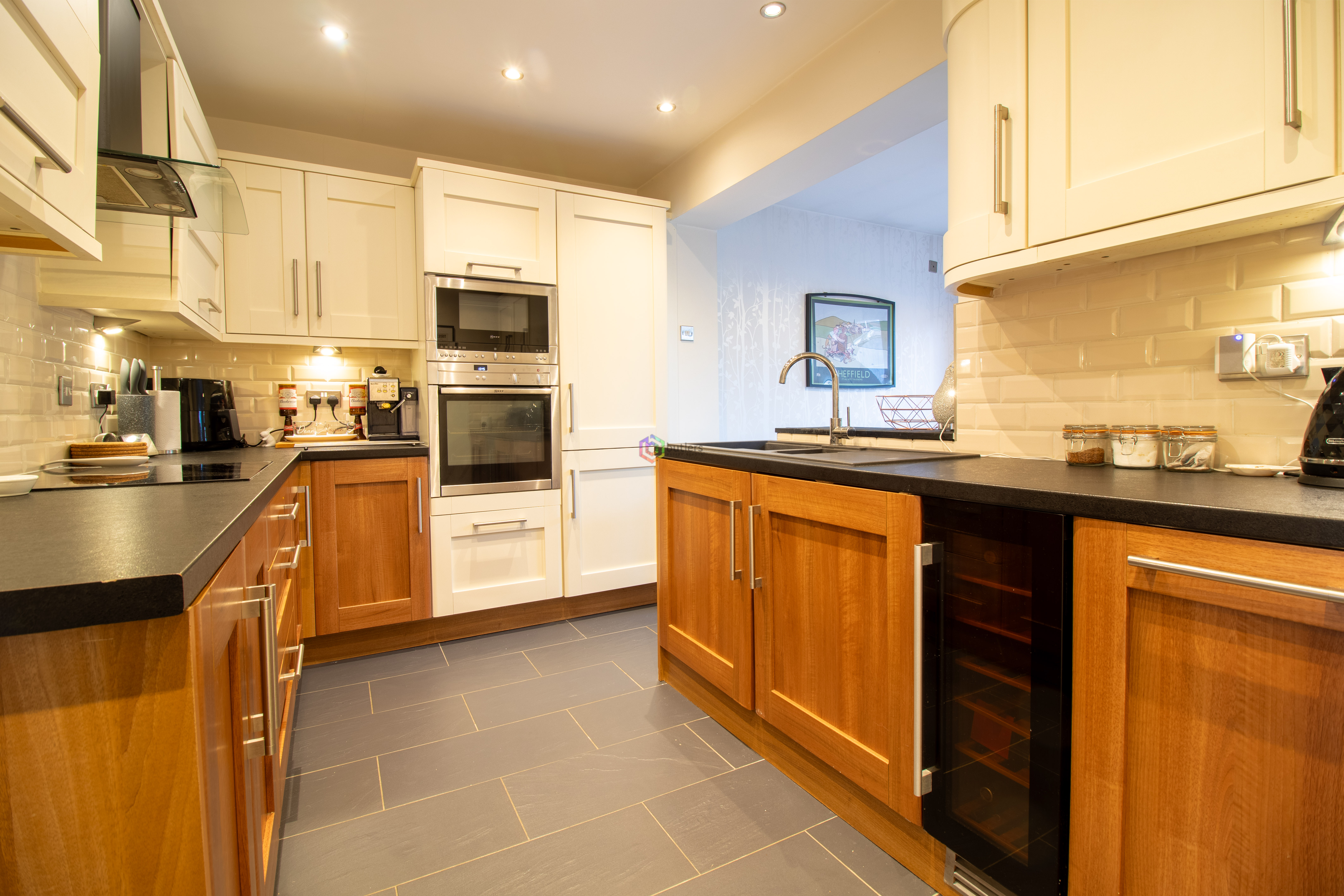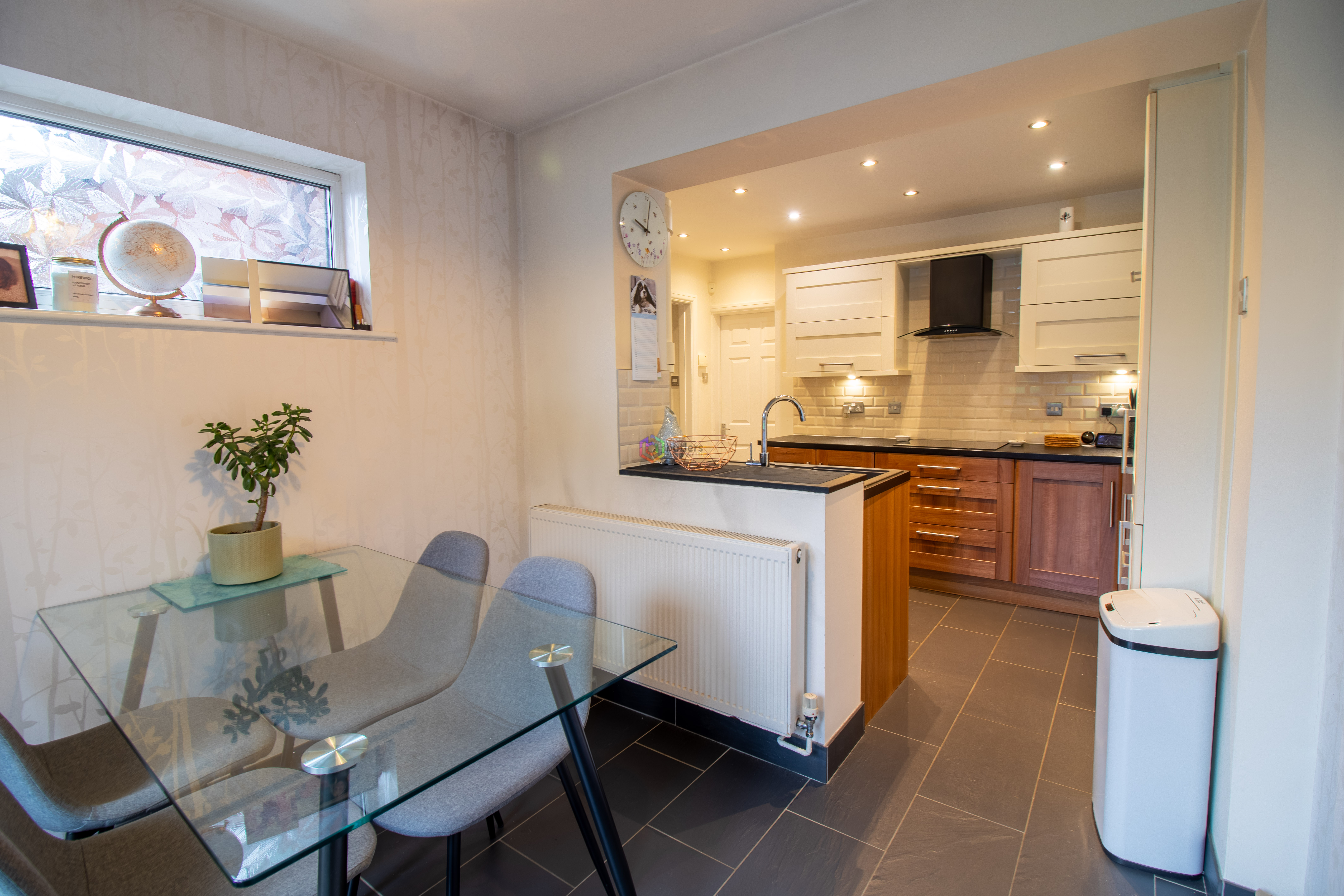 The Lounge is dominated by a large bay window to the front of the house which floods the room with light. Such a cosy place to relax and enjoy a good book or TV. A door leads through to the kitchen.