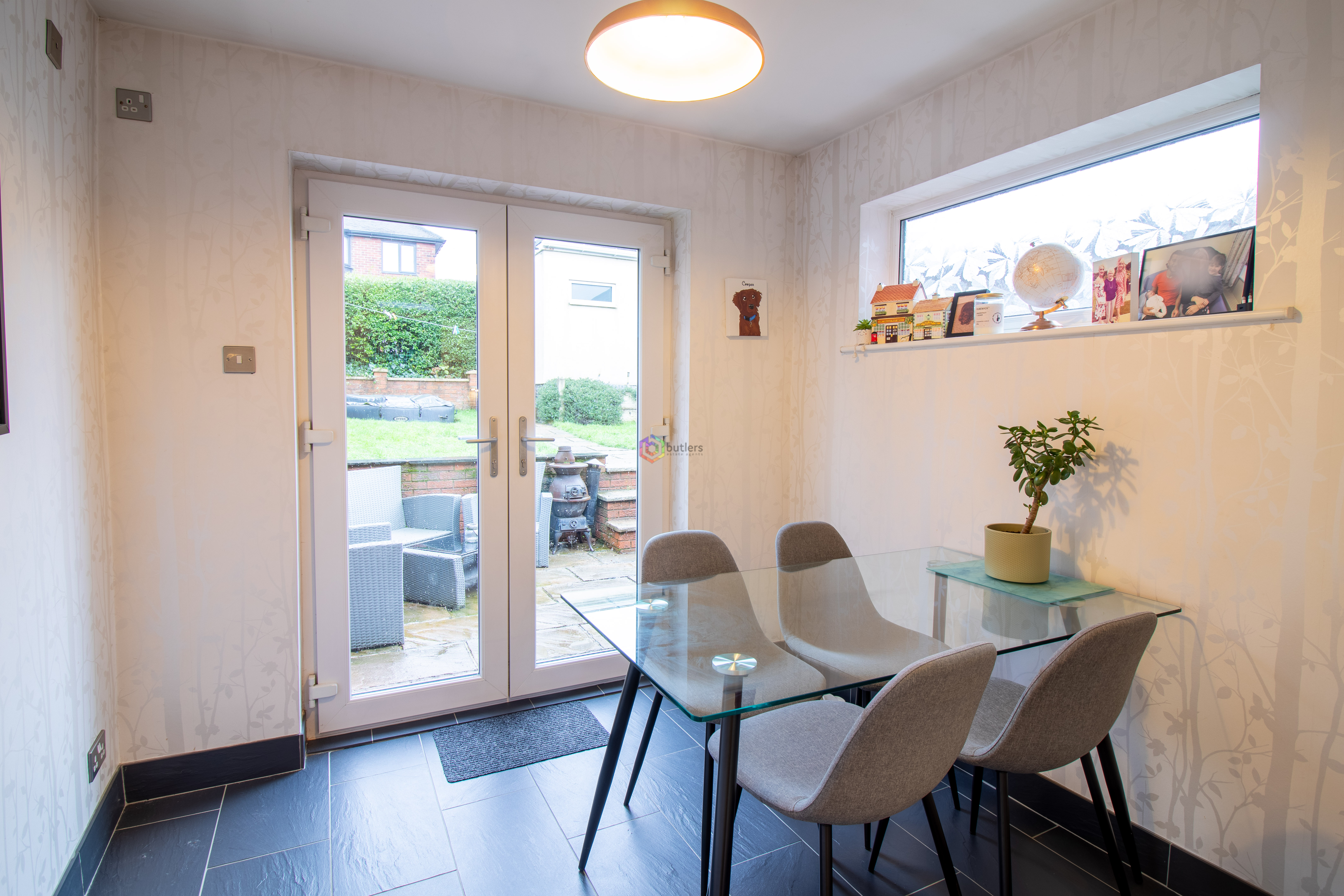 A further extension to the rear of the house has twin patio doors and a window to the side to light up this space for family meals or entertaining guests. It is ideal being open plan to the kitchen allowing the chef to communicate whilst creating those culinary delights.