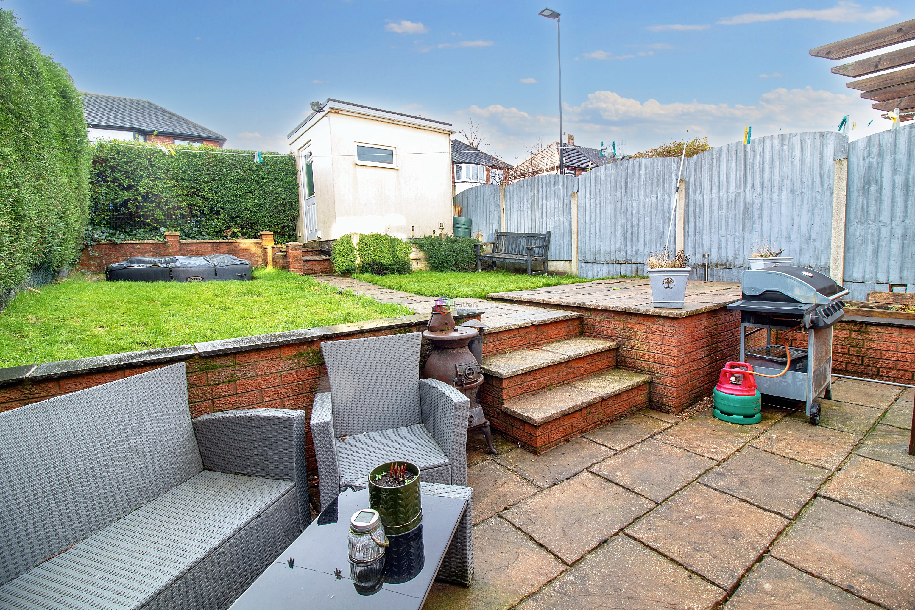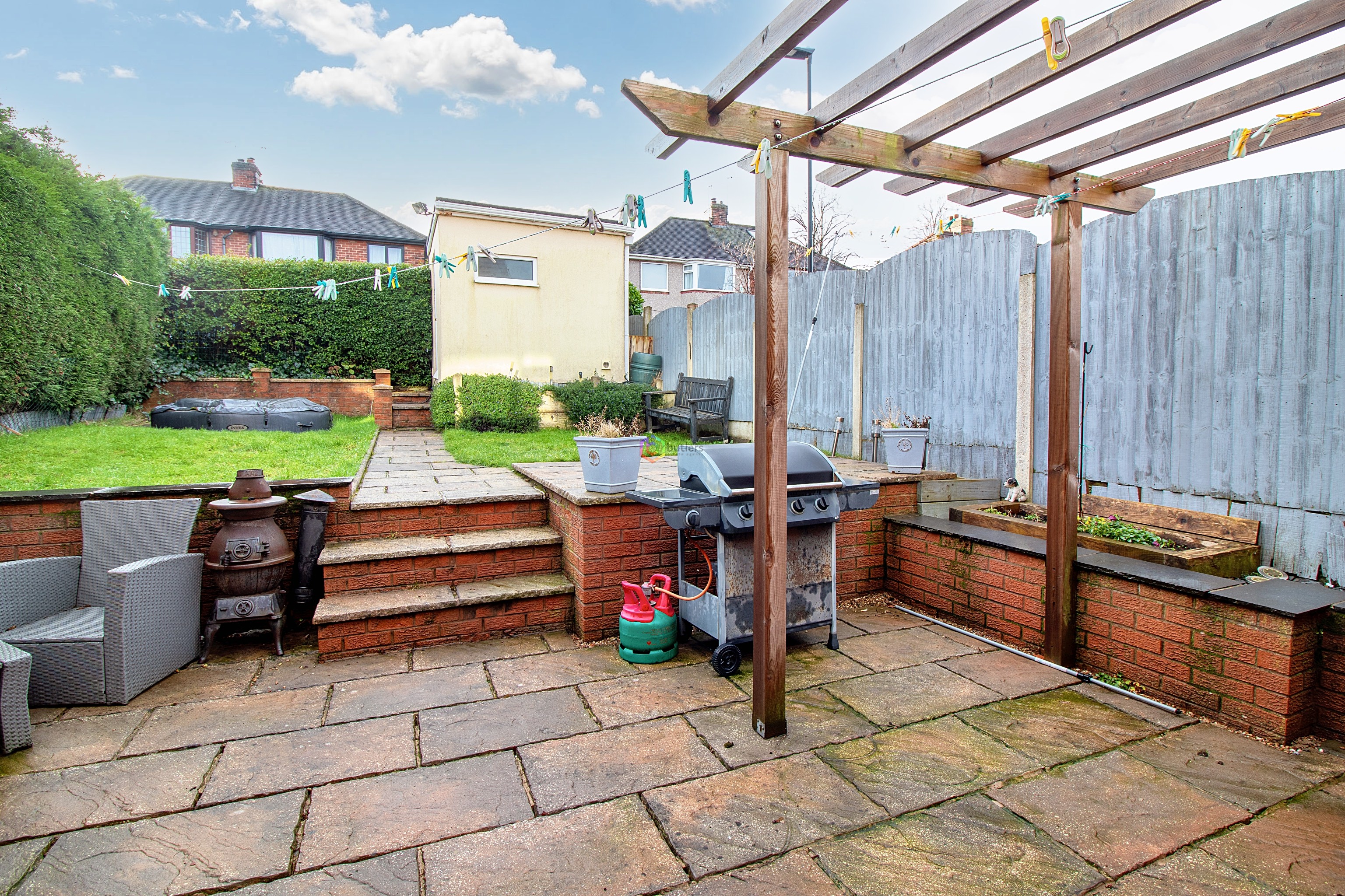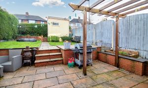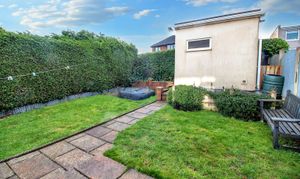The rear garden has a fabulous patio area for your alfresco dining complete with pagoda then steps lead up to a lawned area which has a central path leading to the external store. Fully enclosed its a great area for play or enjoying the British weather.