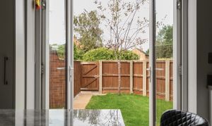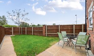 Securely enclosed garden which is mainly laid to lawn, and beyond the garages is an additional outdoor space belonging to the property which presents a flagged patio area with sunken lighting ideal for outdoor entertaining. There is also another piece of garden belonging to the property behind the garage building.