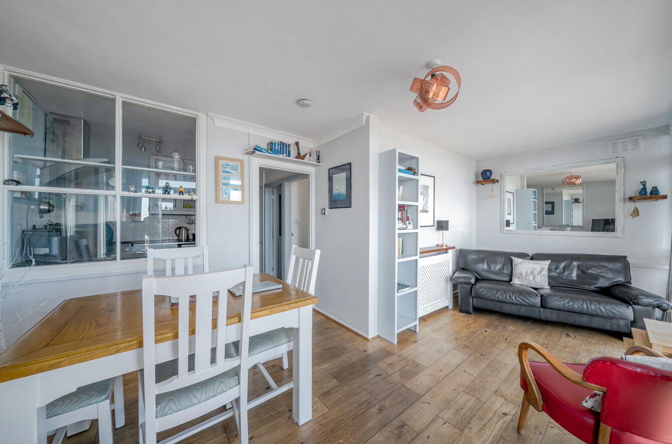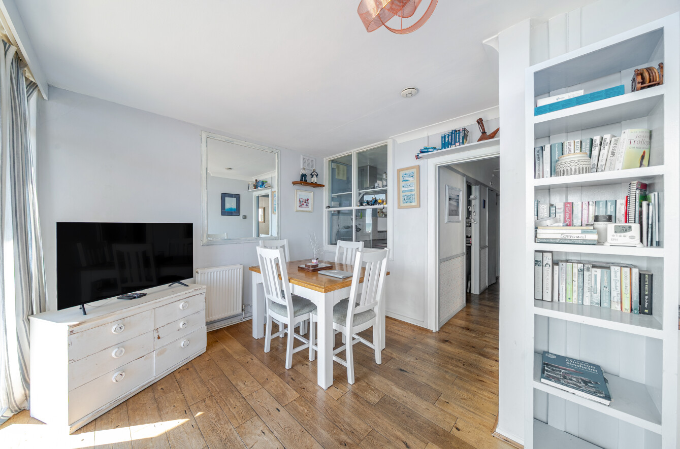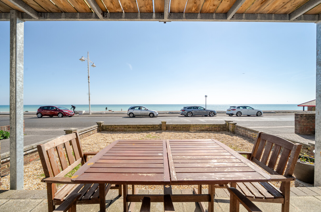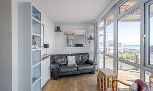 This great apartment has a south facing reception room which opens onto a part decked garden area right on the seafront. South facing, the garden is a real sun trap. Floor to ceiling windows mean the reception room is flooded with light.