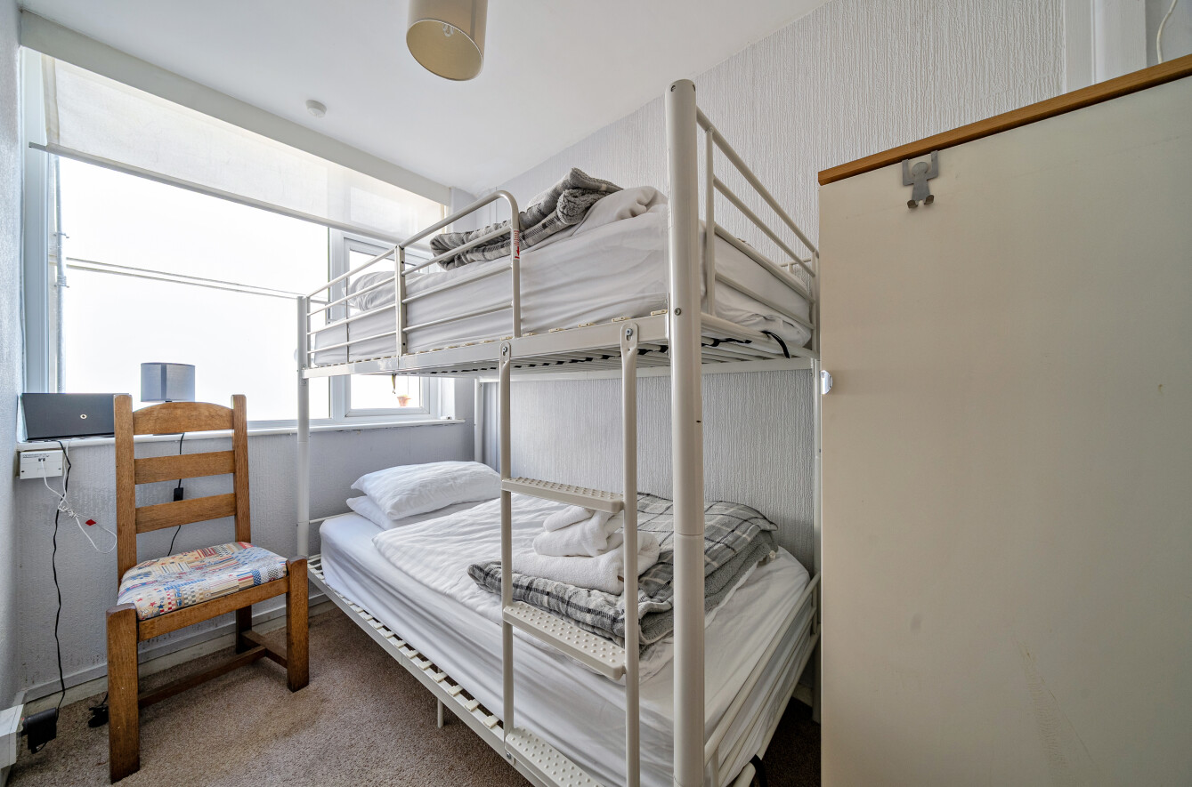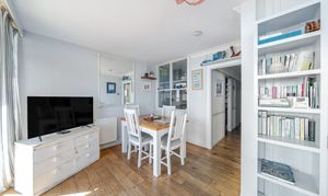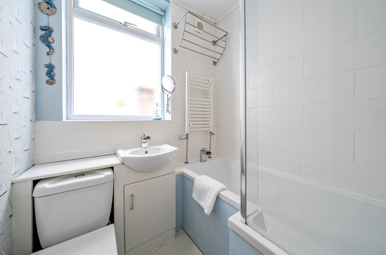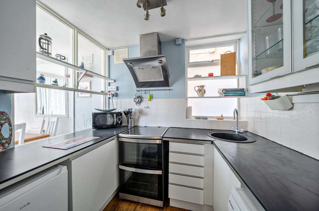 This great apartment has a south facing reception room which opens onto a part decked garden area right on the seafront. South facing, the garden is a real sun trap. Floor to ceiling windows mean the reception room is flooded with light.