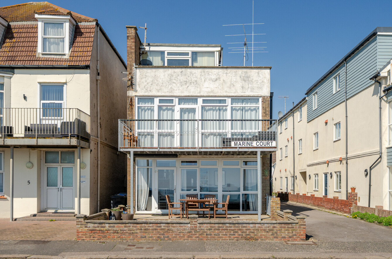 The flat is situated in a purpose built three storey building located between the Bognor Yacht Club and the popular Waverley pub. To the rear of the building is an allocated off-road parking space.