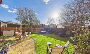 THE GREAT OUTDOORS The rear garden is fully enclosed to both sides and the very rear with timber panel fencing with privacy being on offer from the rear and side of the home. A bark and wood chip planted border runs around the perimeter of the lawn creating the perfect home for colourful planting borders and shrubbery with open lawn space giving way to a flagstone patio making this the ideal haven to enjoy the warmer months with family and friends.
