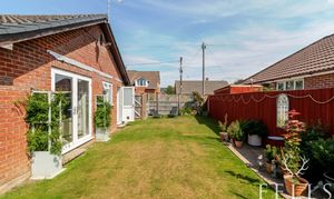 Outside, the garden wraps around the bungalow and is mainly laid to lawn with mature shrub and flower borders. The orientation to the south and west brings in plenty of sun, and the layout provides just the right balance of space and ease of upkeep. A wrought iron gate leads from the front to the rear, while the detached garage and generous driveway complete the picture.