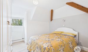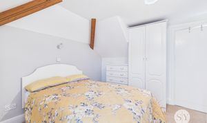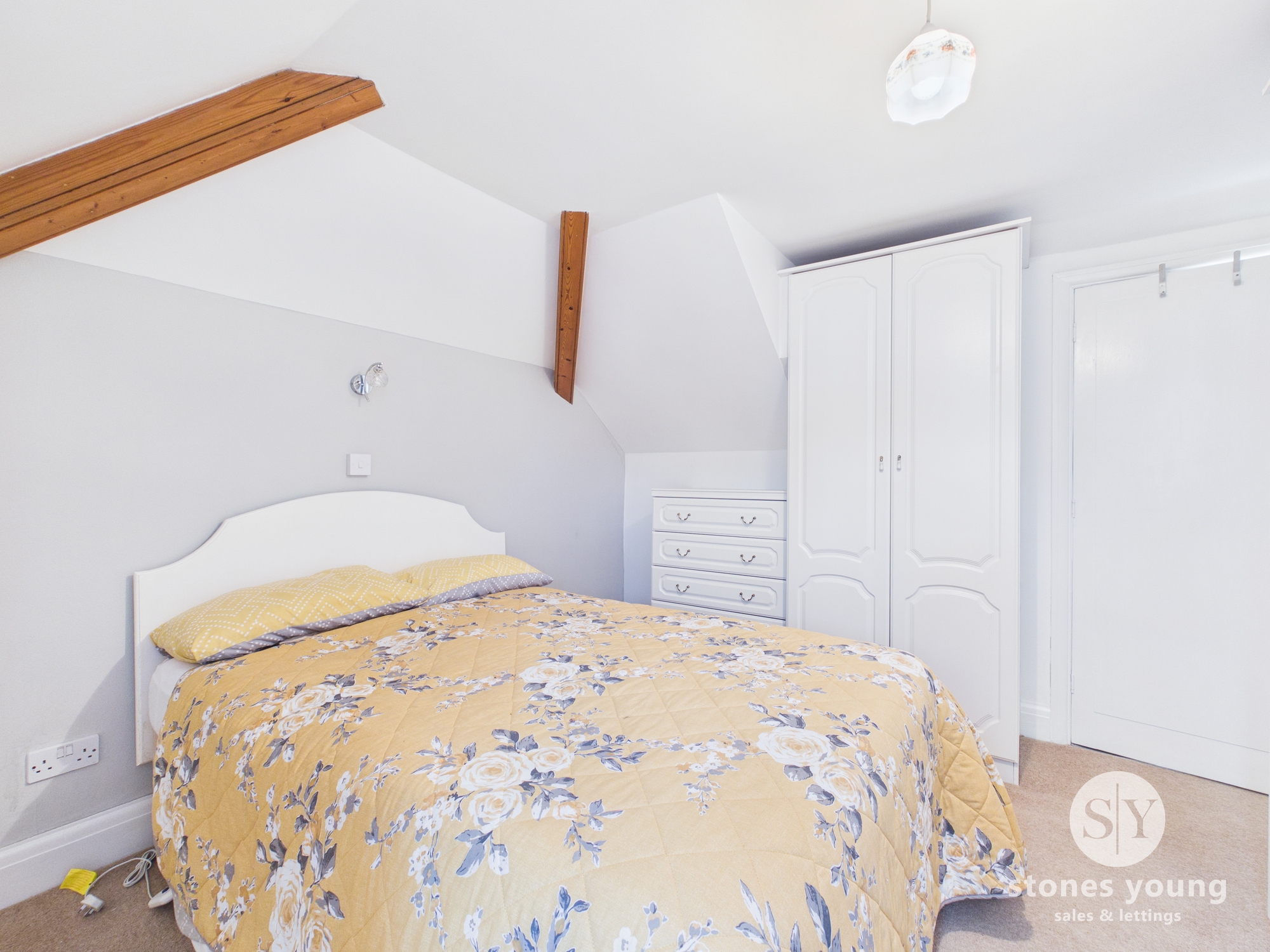 Double bedroom with carpet flooring, double glazed uPVC window, panel radiator.