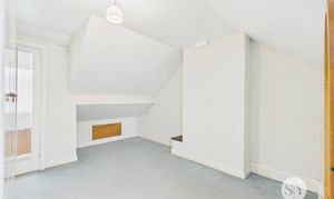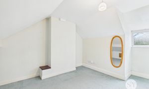 Carpet flooring, ceiling coving, picture rail, electric fire, bespoke alcove unit, double glazed uPVC window x2, panel radiator.