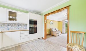 Upon entering, you are greeted by an entrance porch and hallway, which flows well through the property. The spacious lounge, decorated in neutral tones and dual aspect lighting, features a gas fire with a marble hearth and surround. The second reception room serves as a wonderful dining area, perfect for hosting gatherings and family meals as it flows well into the kitchen.
