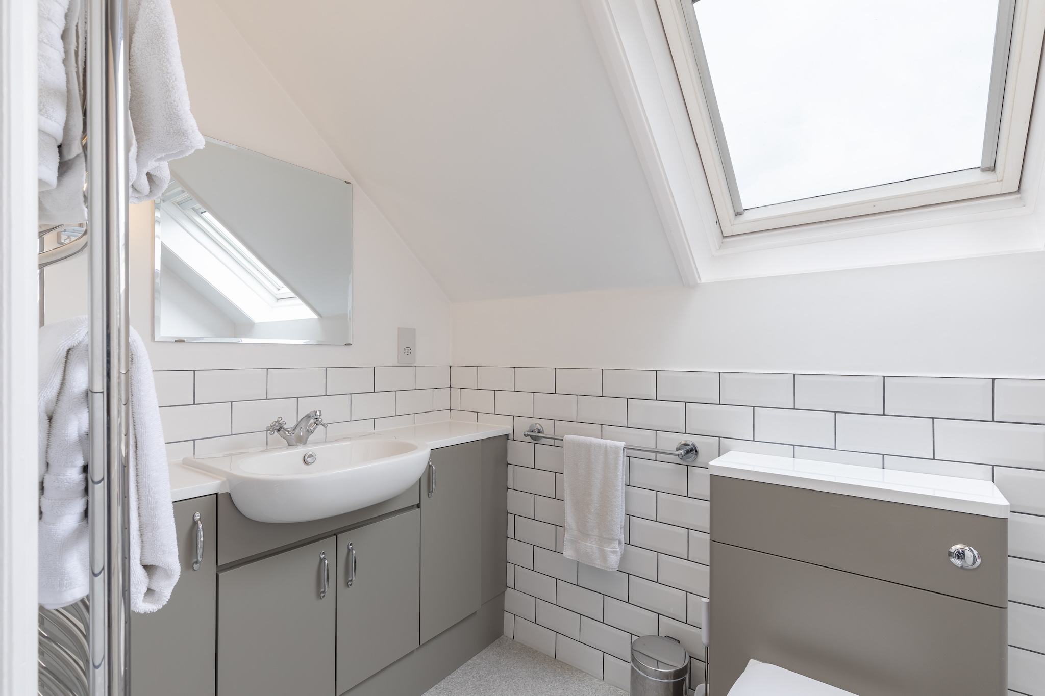 A smaller study or home office provides the perfect setup for remote work or quiet study. The family bathroom, totally remodelled in 2021 has been smartly finished with metro tiling, a walk-in shower, and elegant fittings — blending contemporary comfort with classic design.