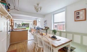 Adjoining the kitchen, the room flows naturally into the garden room, allowing the entire rear of the house to open up beautifully — perfect for gatherings that spill out onto the terrace and garden beyond. Whether cooking, dining, or relaxing together, this versatile space forms the social heart of the home and captures the essence of easy, modern living in a period setting.