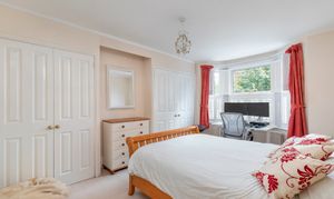 Upstairs, the accommodation is both spacious and versatile. A large double bedroom to the front enjoys a lovely bay window and twin fitted wardrobes, offering a calm and comfortable space to unwind. Two further double bedrooms overlook the rear garden, each well-proportioned and filled with natural light.