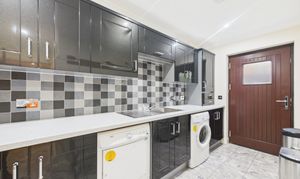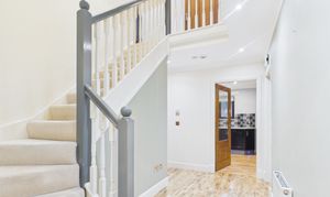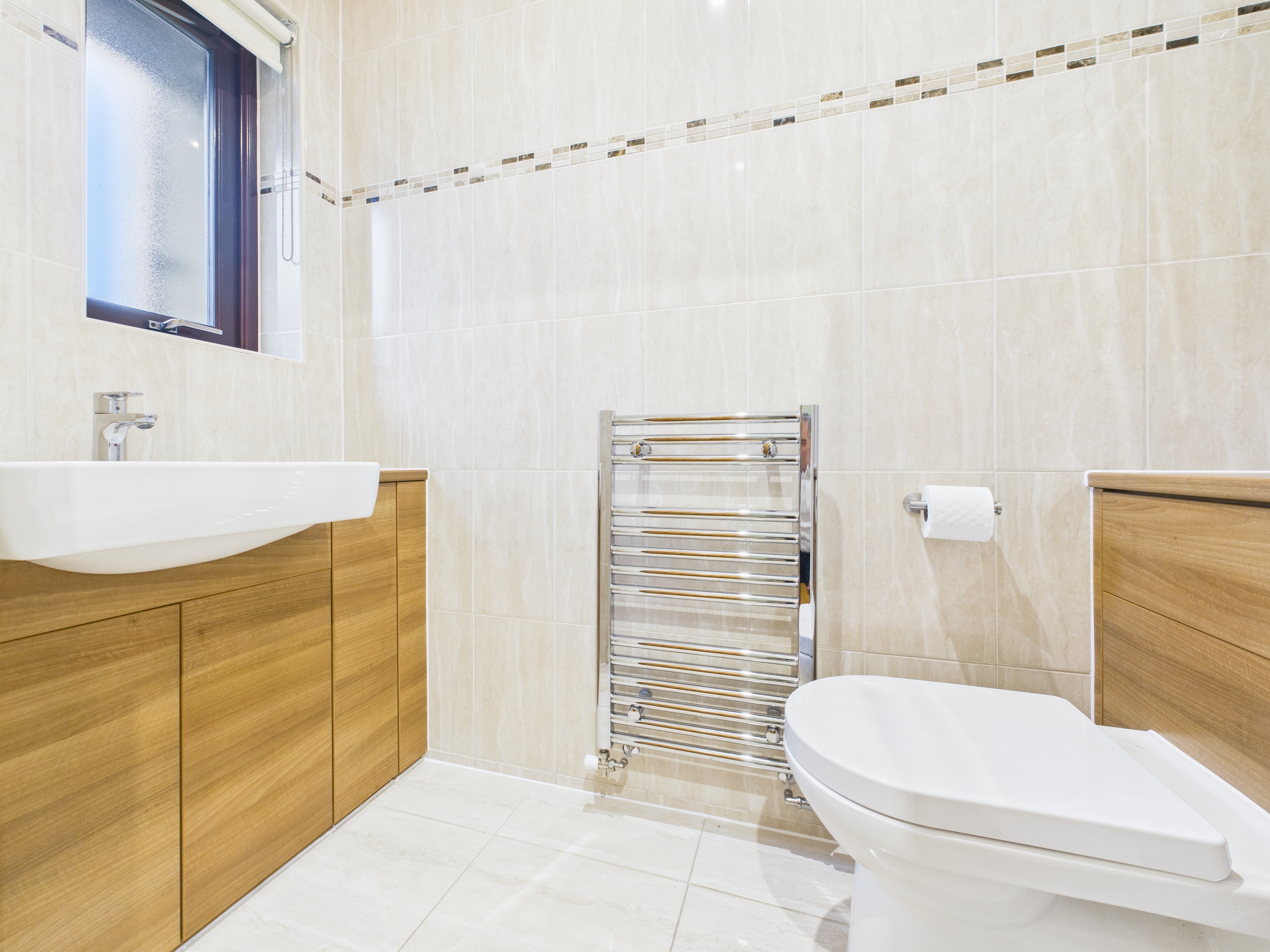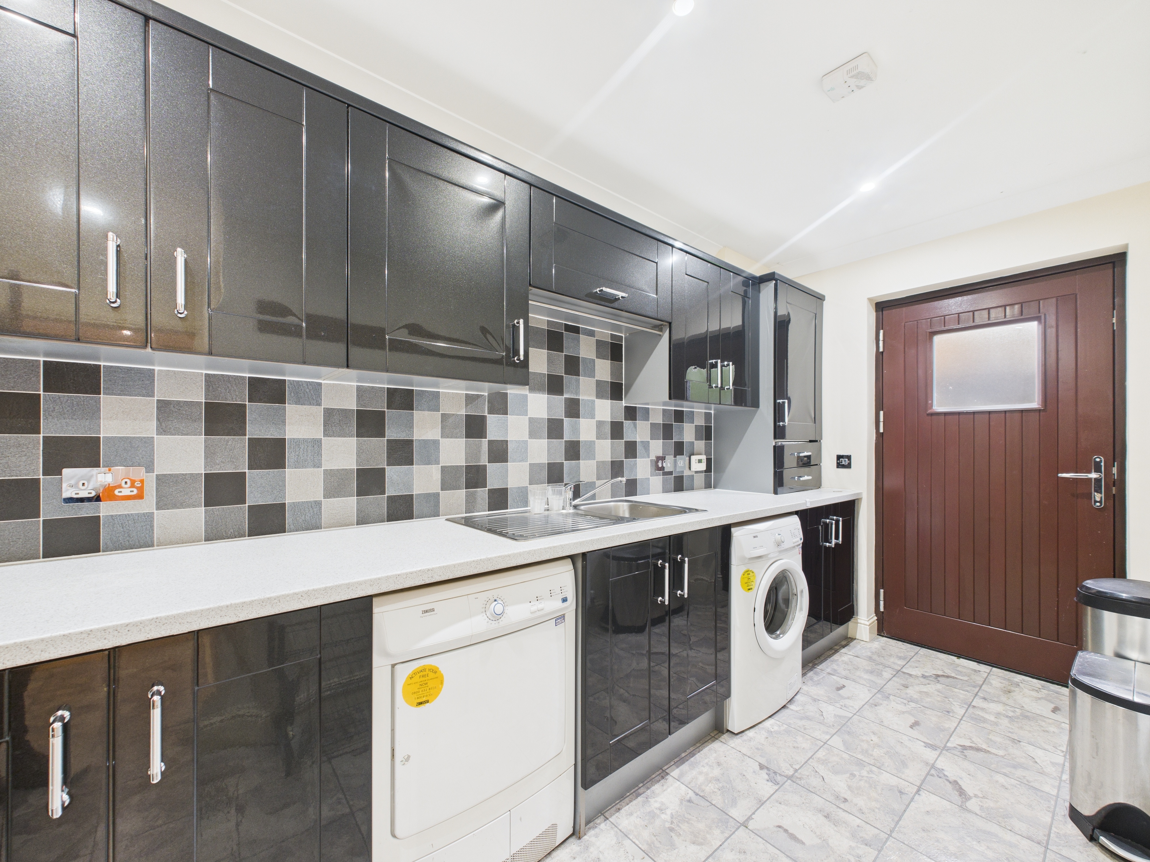 This immediately impressive villa offers well proportioned, flexible family accommodation and has been built to an exceptional standard. The doors, facings and skirting are all solid wood and there are fully reversible double glazed timber frame lockable windows. The internal doors on the ground floor are partly glazed, allowing natural light to flow throughout. The ground floor accommodation comprises; entrance vestibule with cloaks W.C, a bright reception hallway, formal lounge at the front of the house linking to a well-proportioned open plan dining room/kitchen to the rear and a utility room with a connecting door to the integral garage. The fitted kitchen has a range of high quality units and a wide range of integrated appliances by AEG and Electrolux.