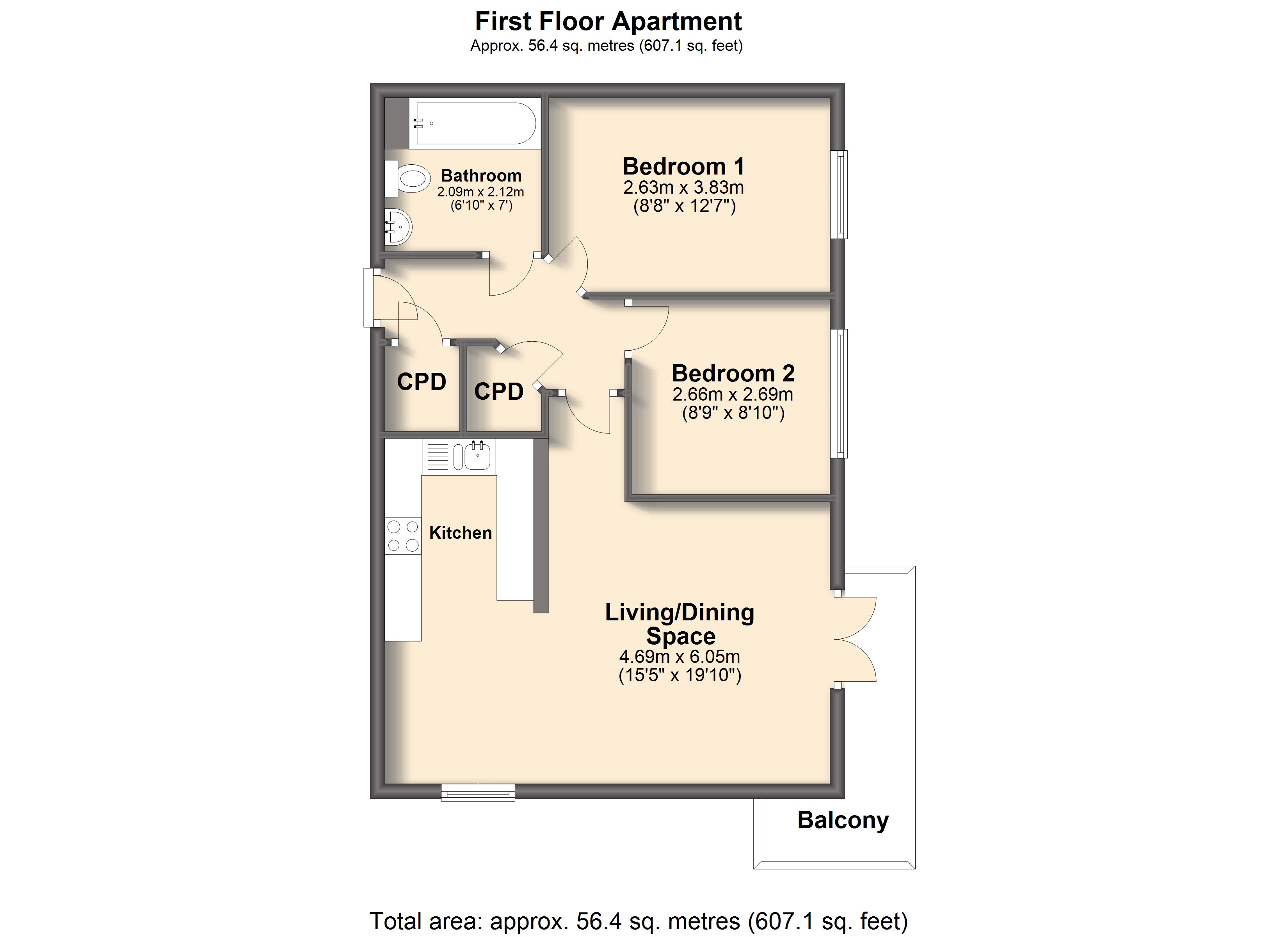 Ideally suited to modern living, the property offers a fantastic open plan living/dining space, incorporating a fitted kitchen with appliances. The living space is flooded with natural light and includes a superb balcony. Two good-sized bedrooms allow for fitted or stand-alone furniture and there's plenty of additional storage space in the hallway.