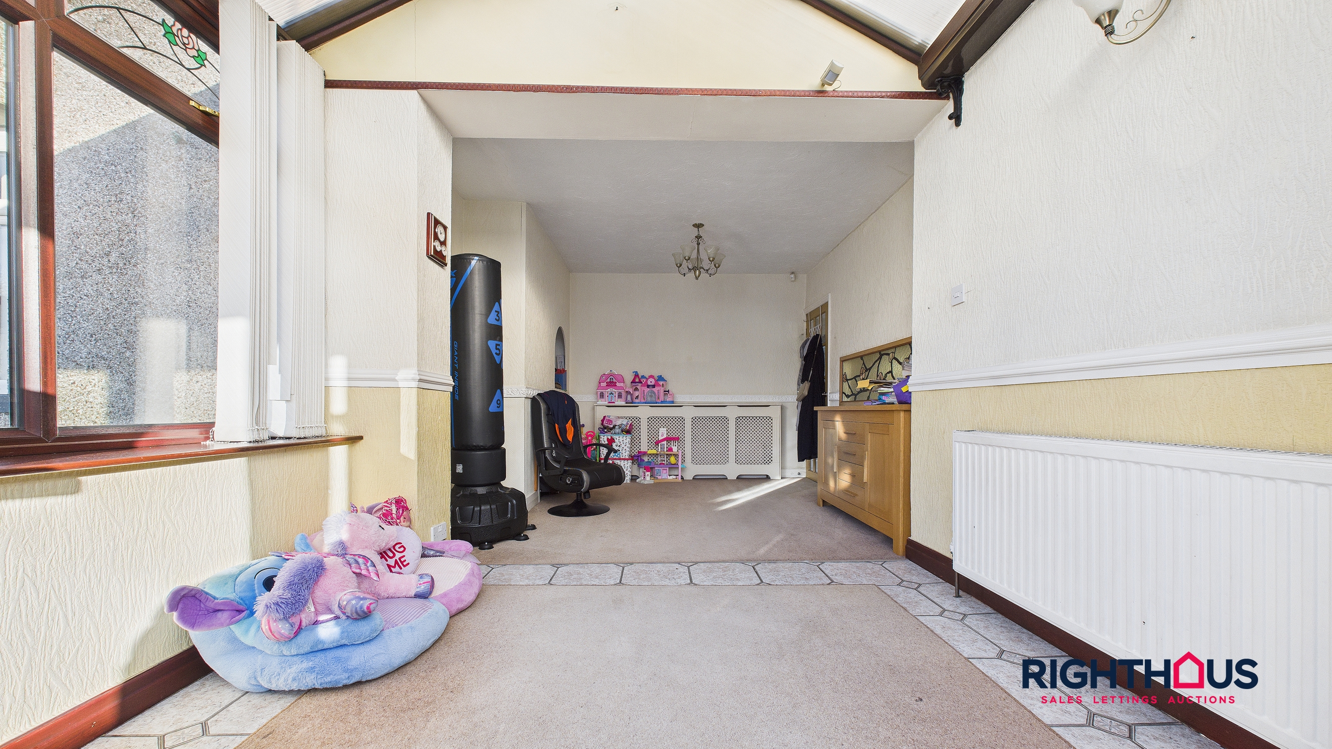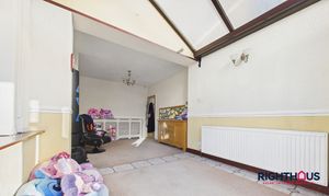 A sizeable open aspect room with pitched roof uPVC conservatory addendum.