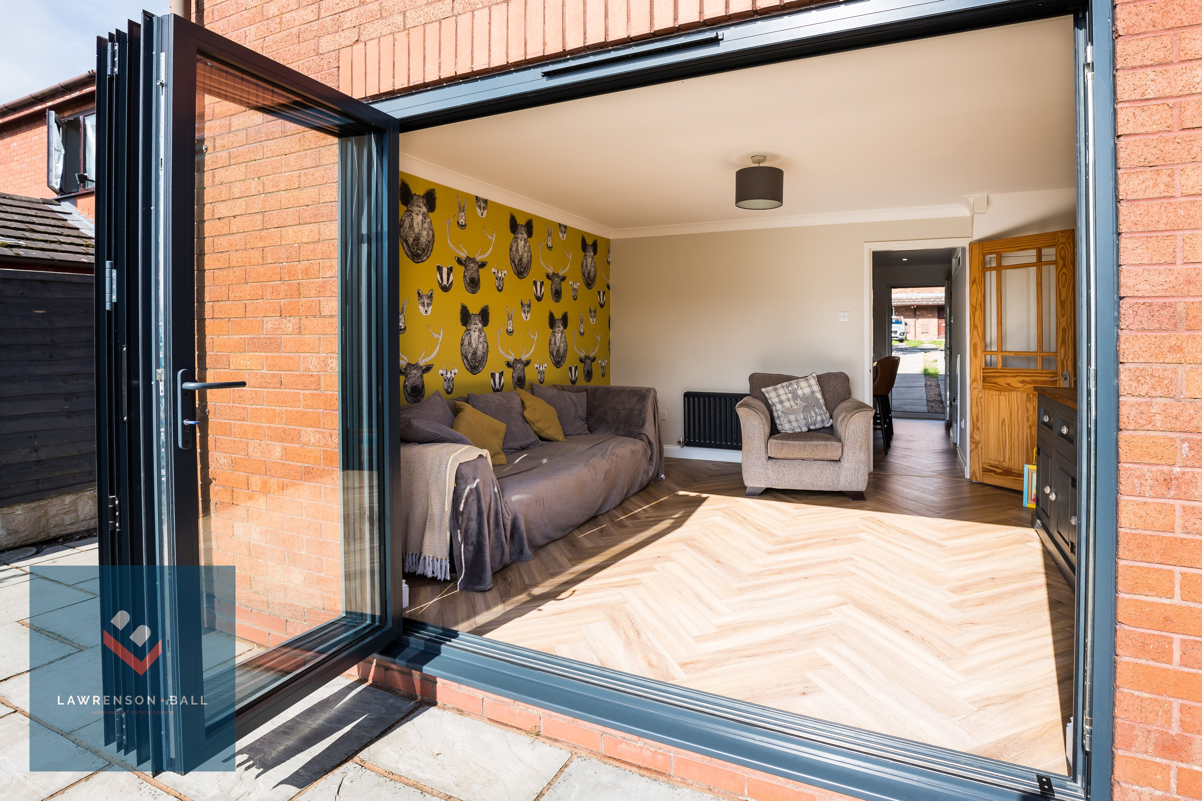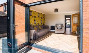 This reception room is flooded with natural light thanks to the South East facing bi-fold doors which open out onto the large rear garden. Wood effect herringbone Luxury Vinyl Tile (LVT) flooring. Radiator.