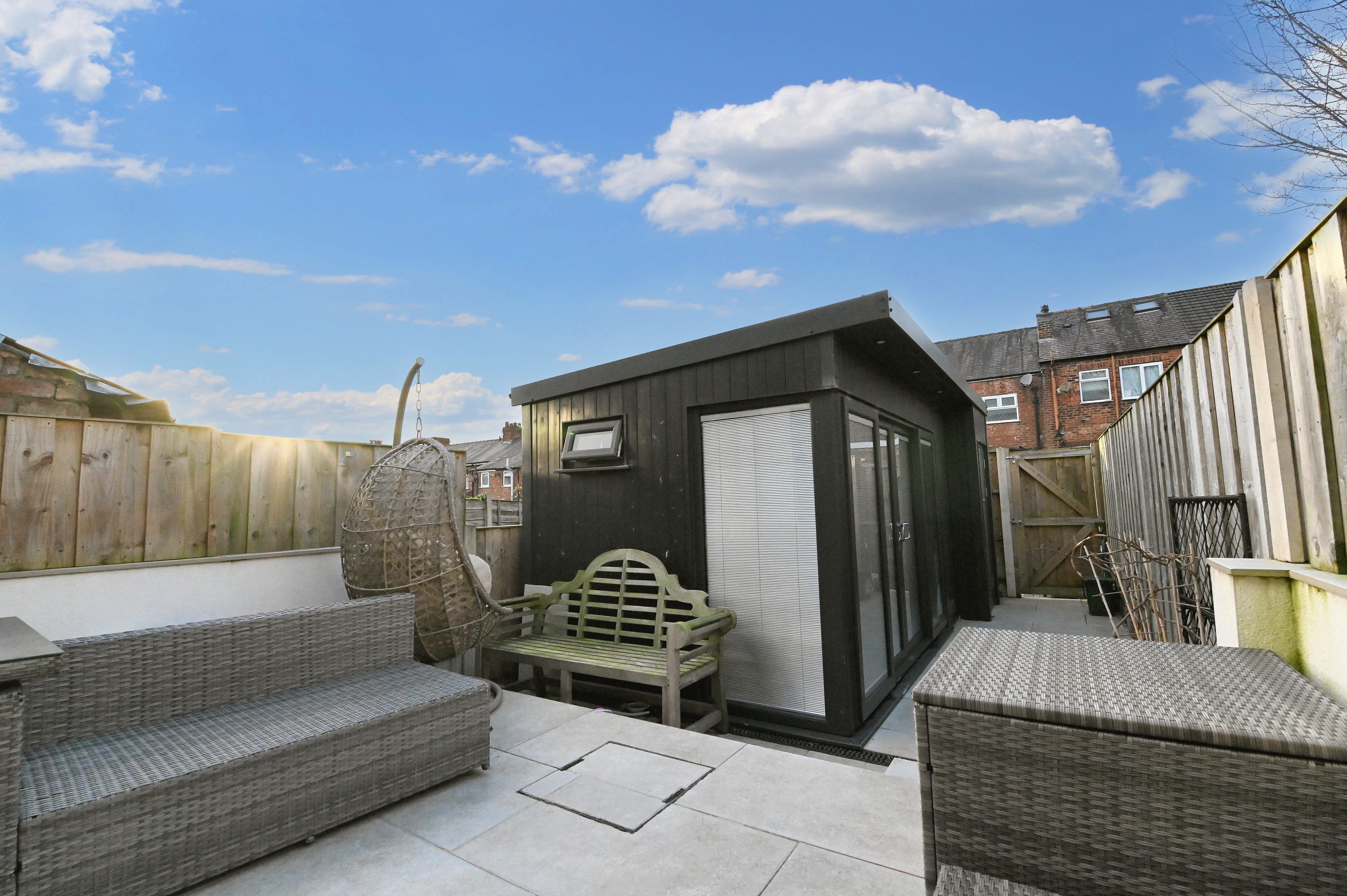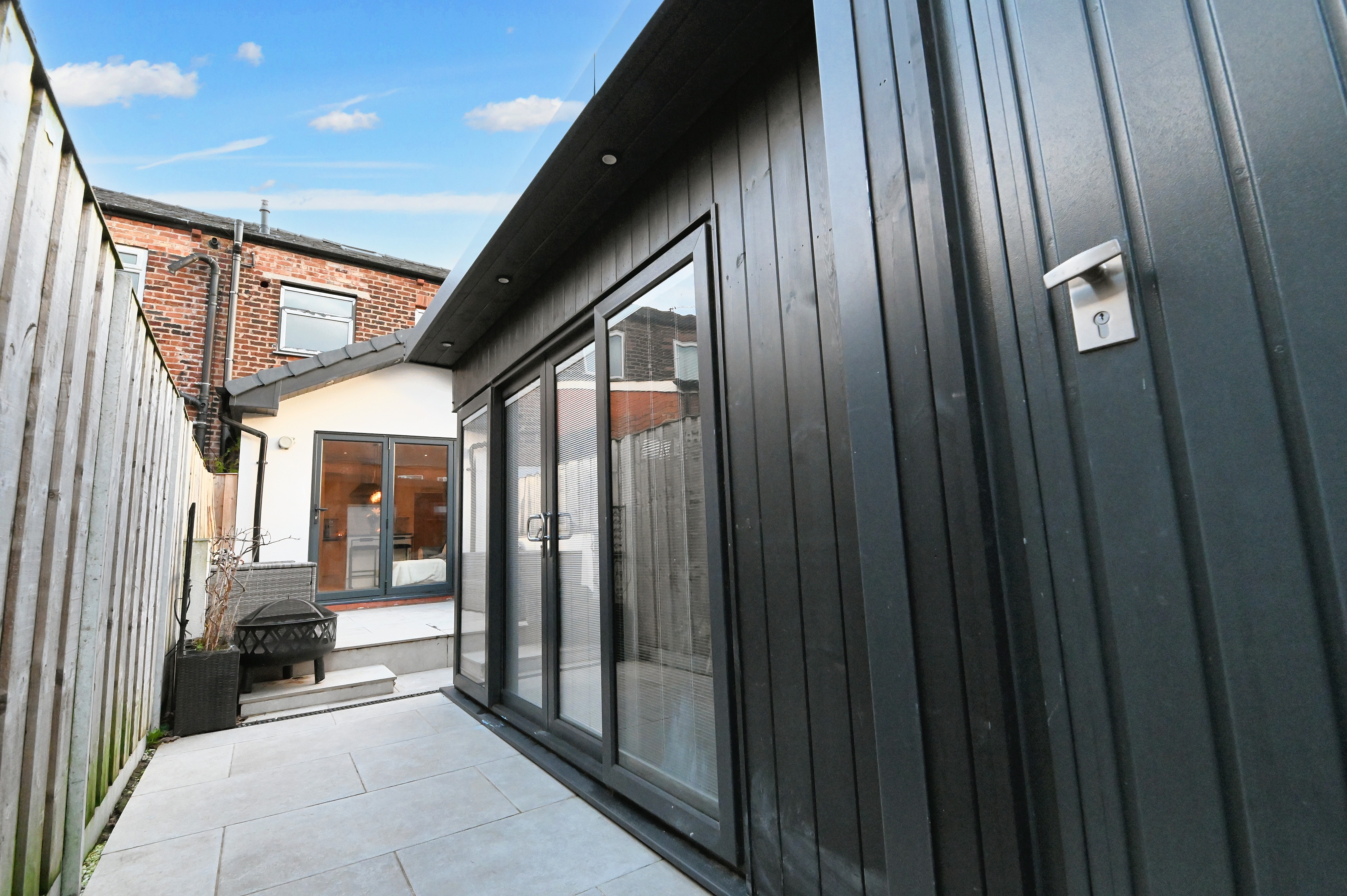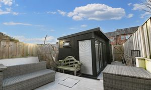 A small yard to the front & beautifully presented yard to the rear with detached outbuilding (with underfloor heating & W.C).