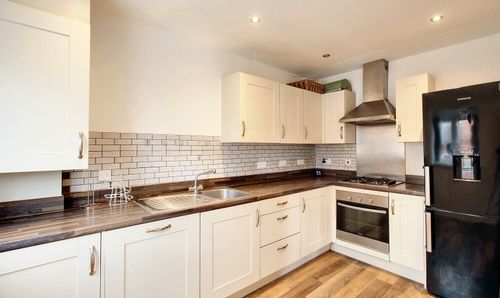 The property features two double bedrooms, providing ample space for a growing family or guests. Each bedroom offers a comfortable retreat, decorated in a neutral palette.