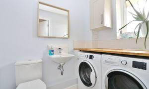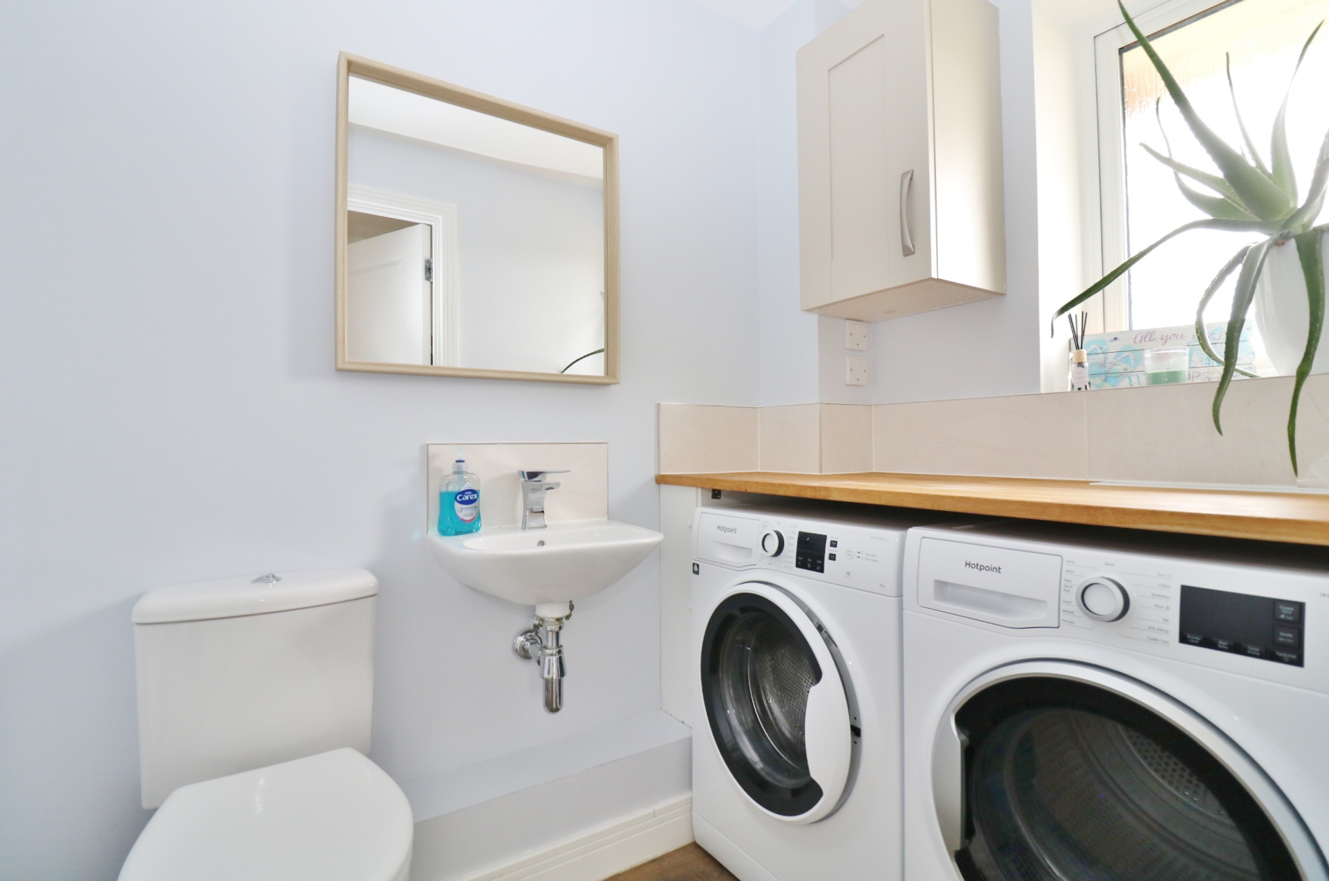 The utility room/WC has space for a washing machine and tumble dryer, a WC, wash hand basin and a window to the front.