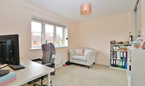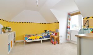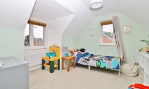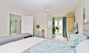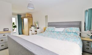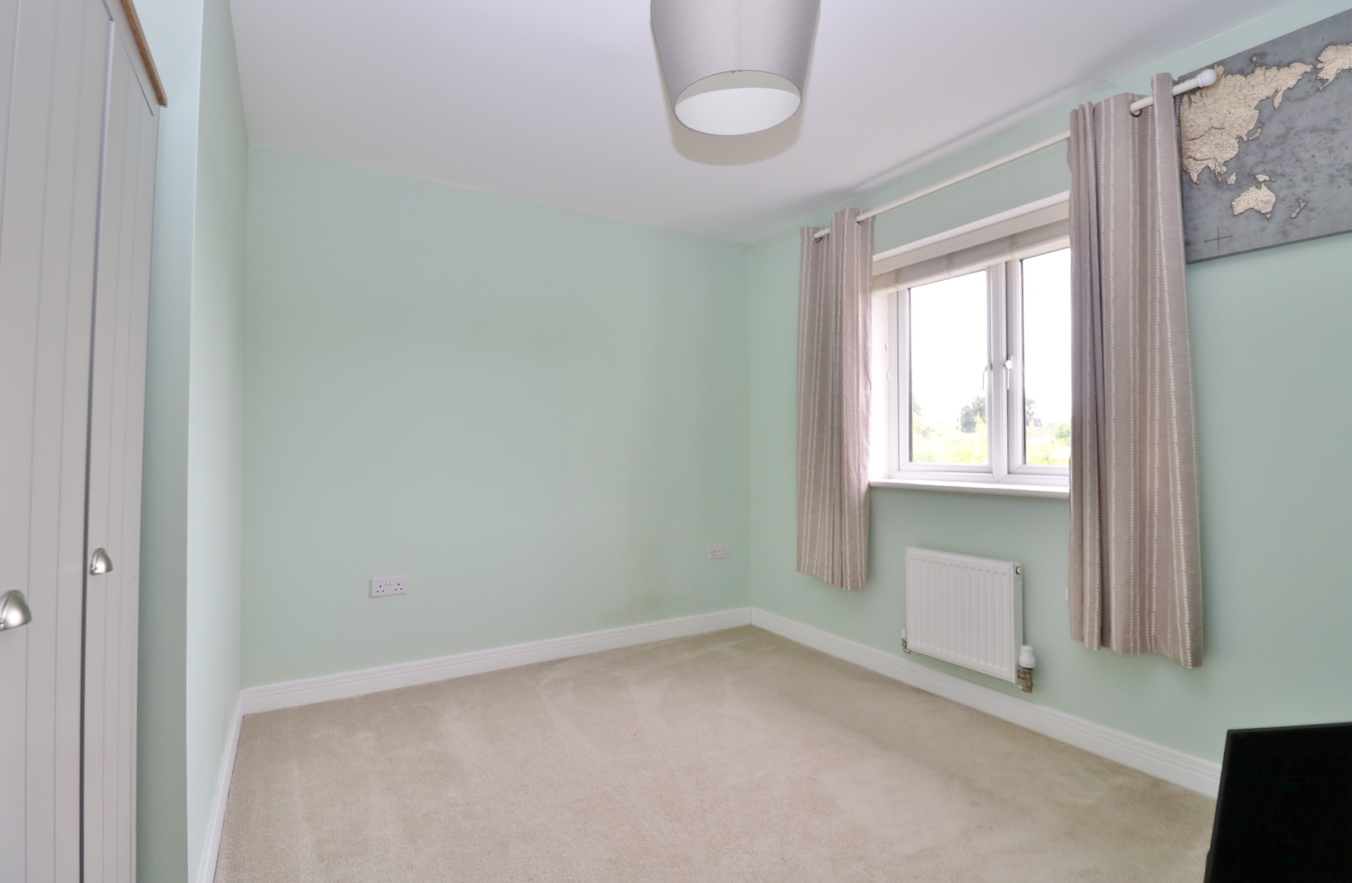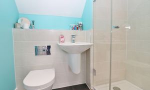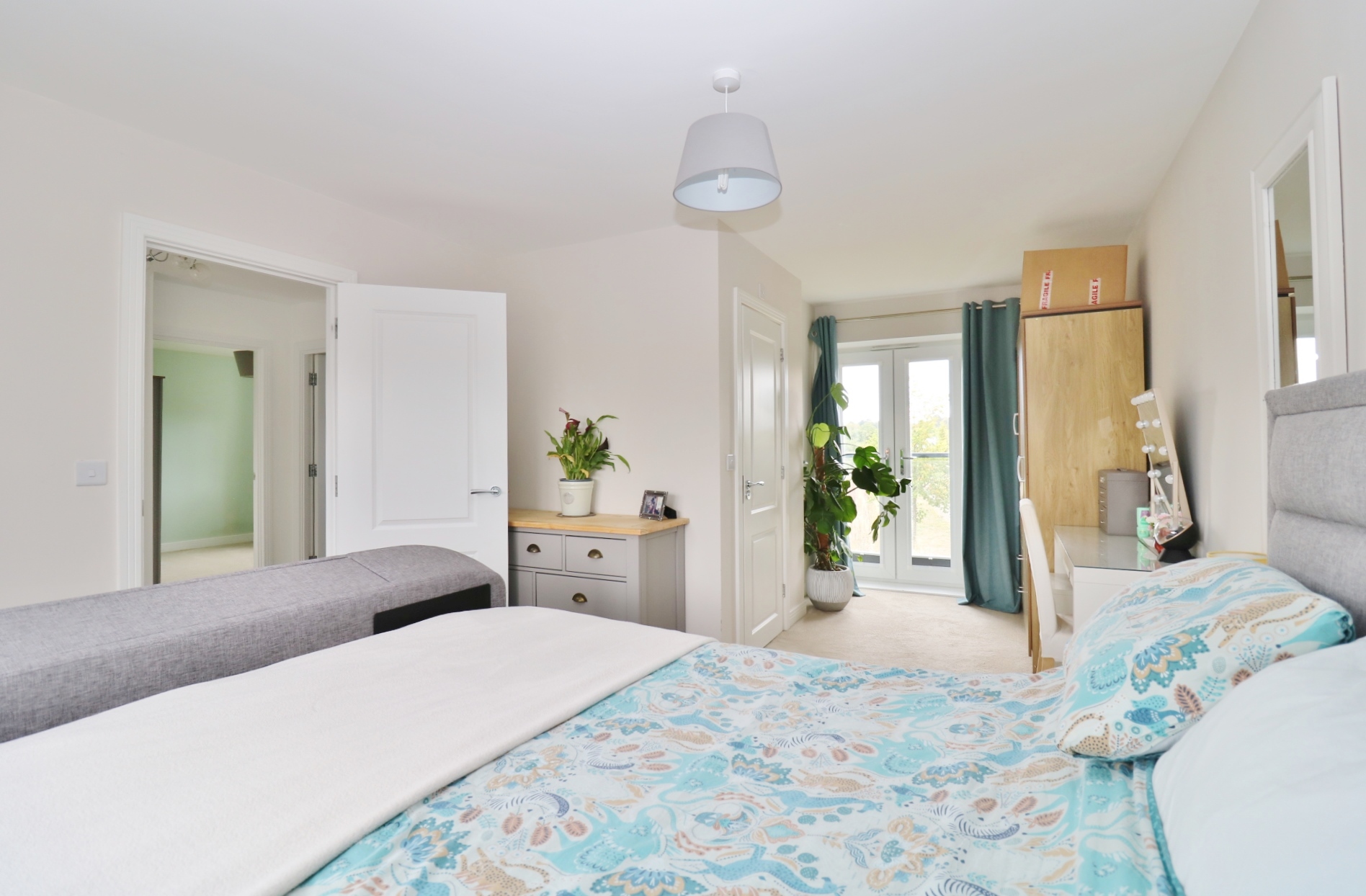 On the first floor, the large, light and airy master bedroom enjoys a dual aspect with a Juliet balcony overlooking the green to the front . The modern en-suite offers a shower cubicle, wash hand basin and WC.