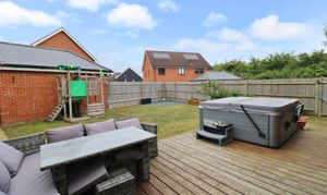 The attractive rear garden has a decked seating area with a hot tub (available via separate negotiation), leaving the remainder of the garden mainly laid to lawn with pedestrian access to the garage.