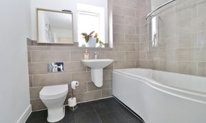 The second bedroom has a window to the front, whilst the third bedroom has a built-in wardrobe and overlooks the rear garden. The modern family bathroom comprises a P-shaped bath with shower over, wash hand basin, WC and a window to the front.