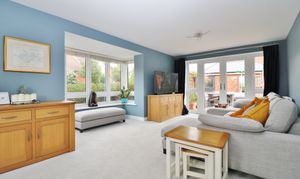 The entrance hall has stairs to the first floor, a built-in storage cupboard and doors through to all ground floor rooms, including the generous lounge which enjoys a triple aspect and has French doors opening out to the rear garden.