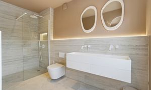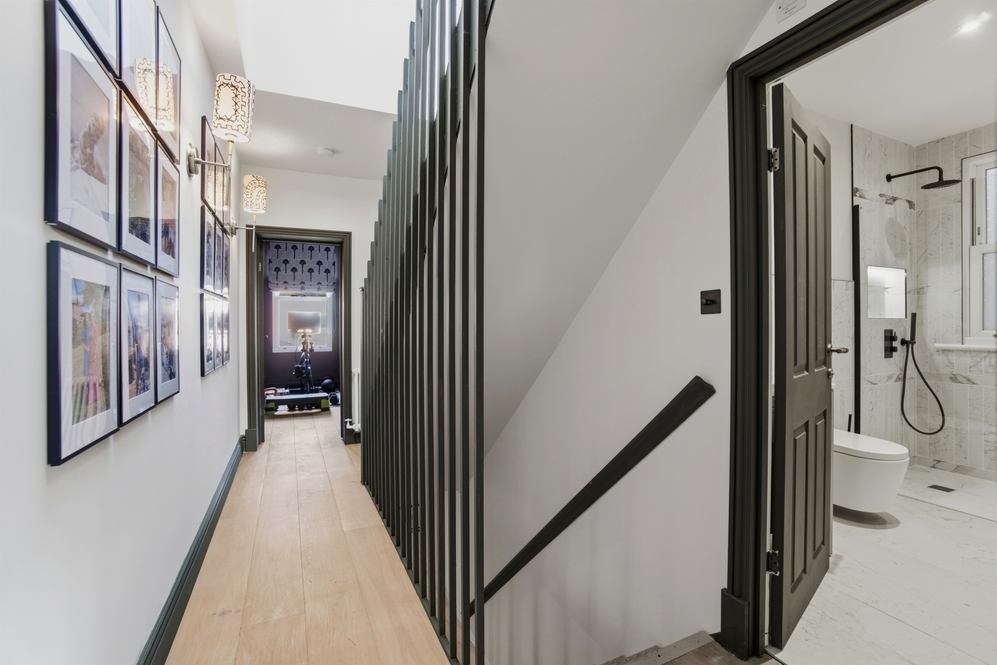The first floor comprises three well-proportioned bedrooms, including one with a contemporary en-suite shower room featuring a walk-in shower and twin ‘Jack and Jill’ basins. A further stylish shower room serves the remaining bedrooms.