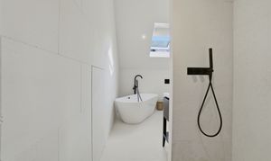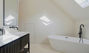 Occupying the entire second floor is a superb principal suite, creating a private and luxurious retreat. The room benefits from skylight windows, a dedicated dressing area and a beautifully appointed bathroom with freestanding bath and separate walk-in shower.