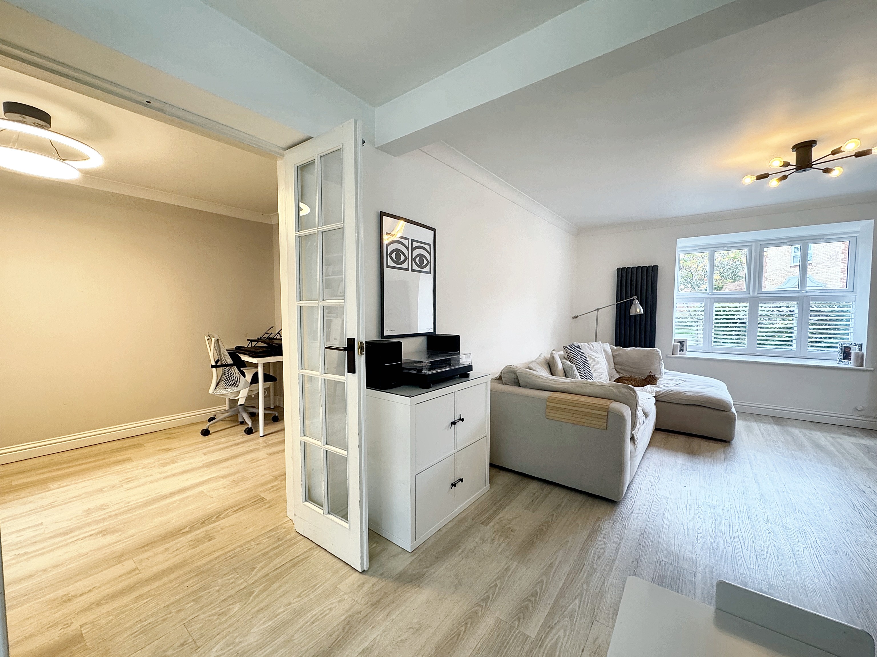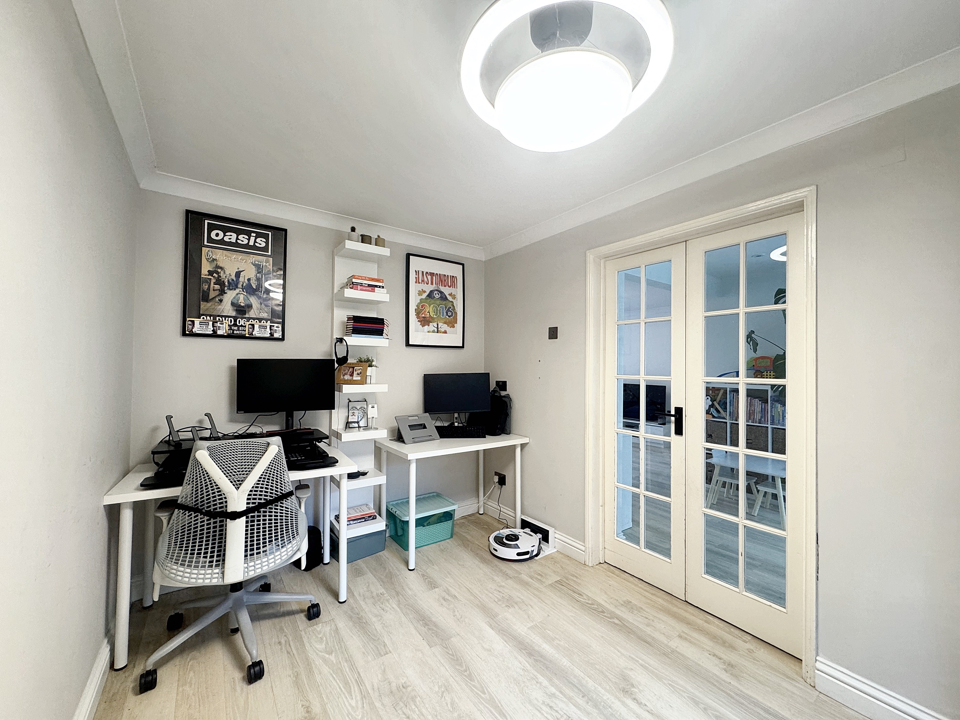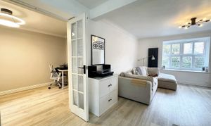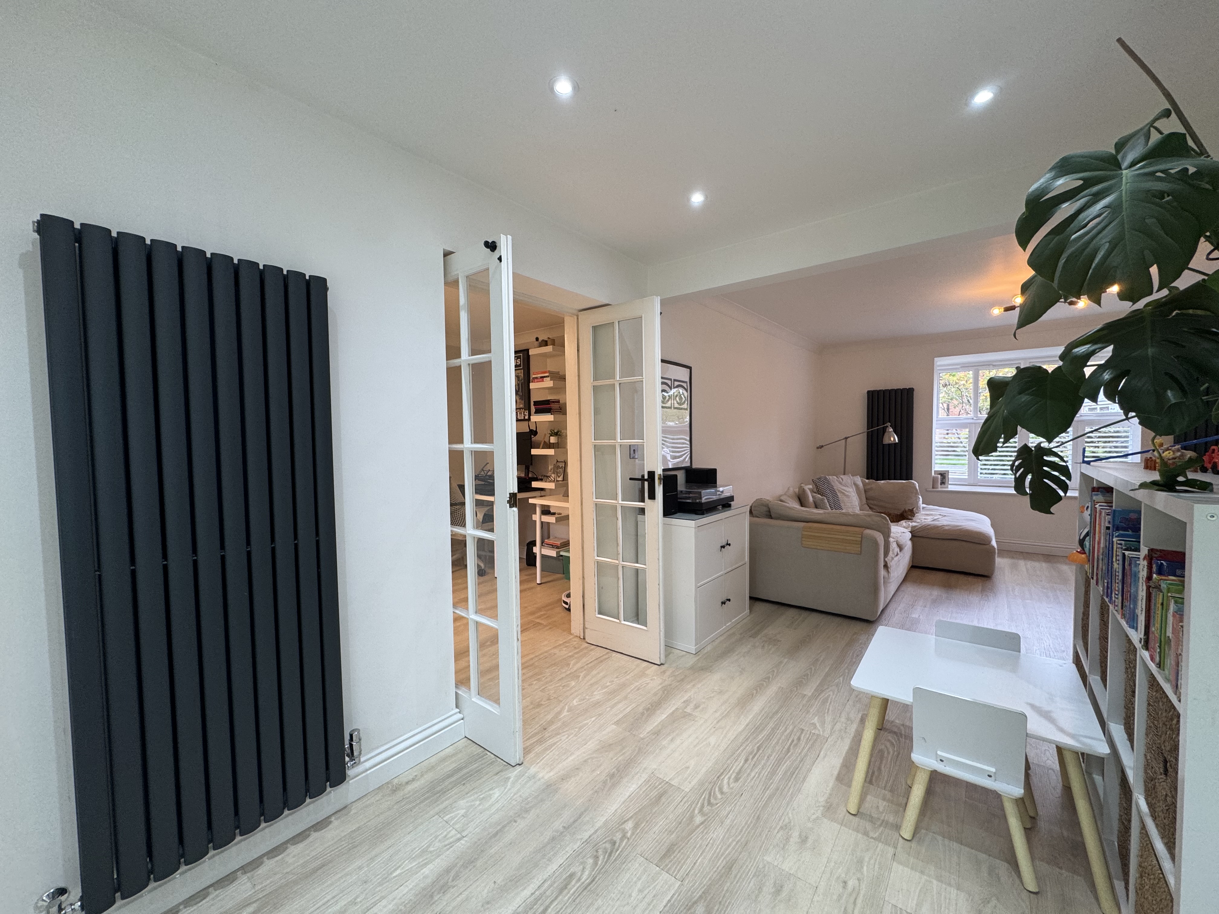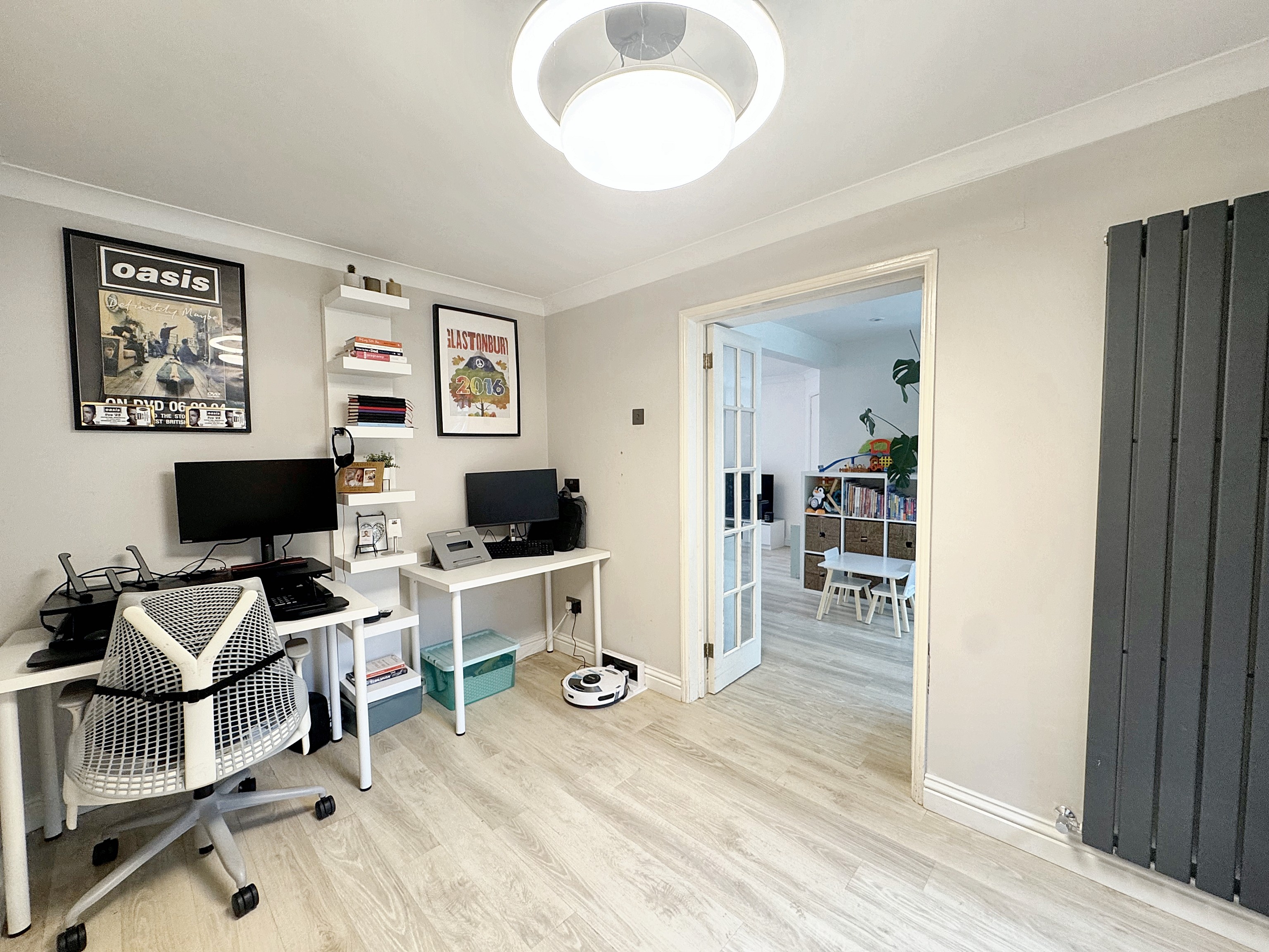 Converted garage to a separate office space or play room with double doors from the open plan living area. Back door to the rear elevation.