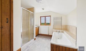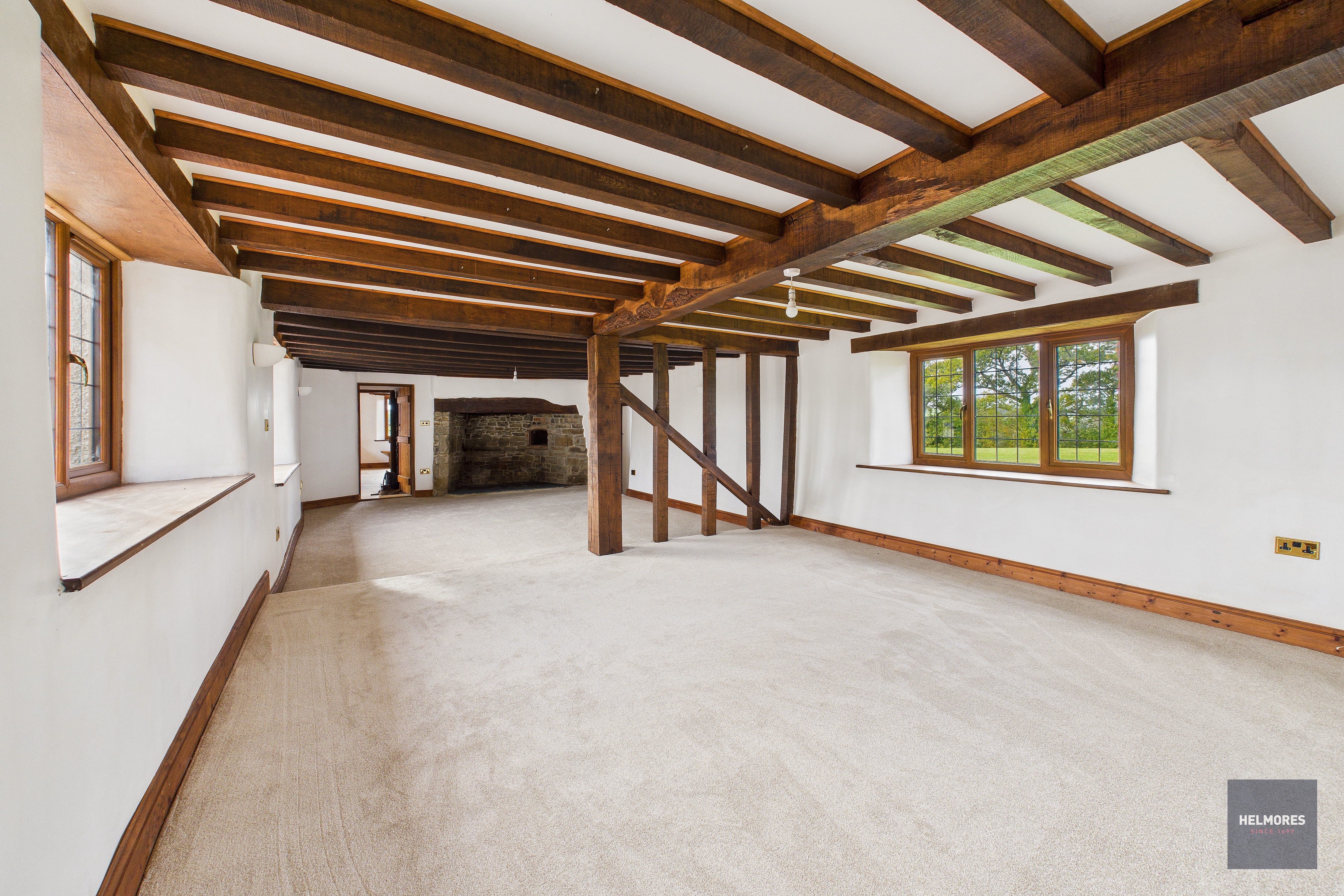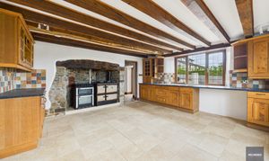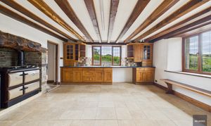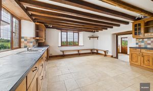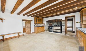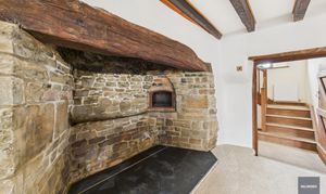 The house itself has a wonderfully solid presence, arranged over three floors and offering large, high-ceilinged rooms that make the most of the natural light and rural outlook. Recent redecoration and new carpeting have given it a fresh and welcoming feel, while many of the period features and character details remain with a huge inglenook fireplace and plenty of exposed timber beams. There’s oil fired central heating and combined with the double glazed windows, the house isn’t going to be drafty like many older farmhouses of this type. The layout is ideal for family life or entertaining, with a large, open reception room (with that stunning fireplace), a traditional farmhouse kitchen at its heart, and six double bedrooms — two with en-suites — complemented by two further bathrooms, so there’s space and flexibility for guests or multi-generational living over the three floors.