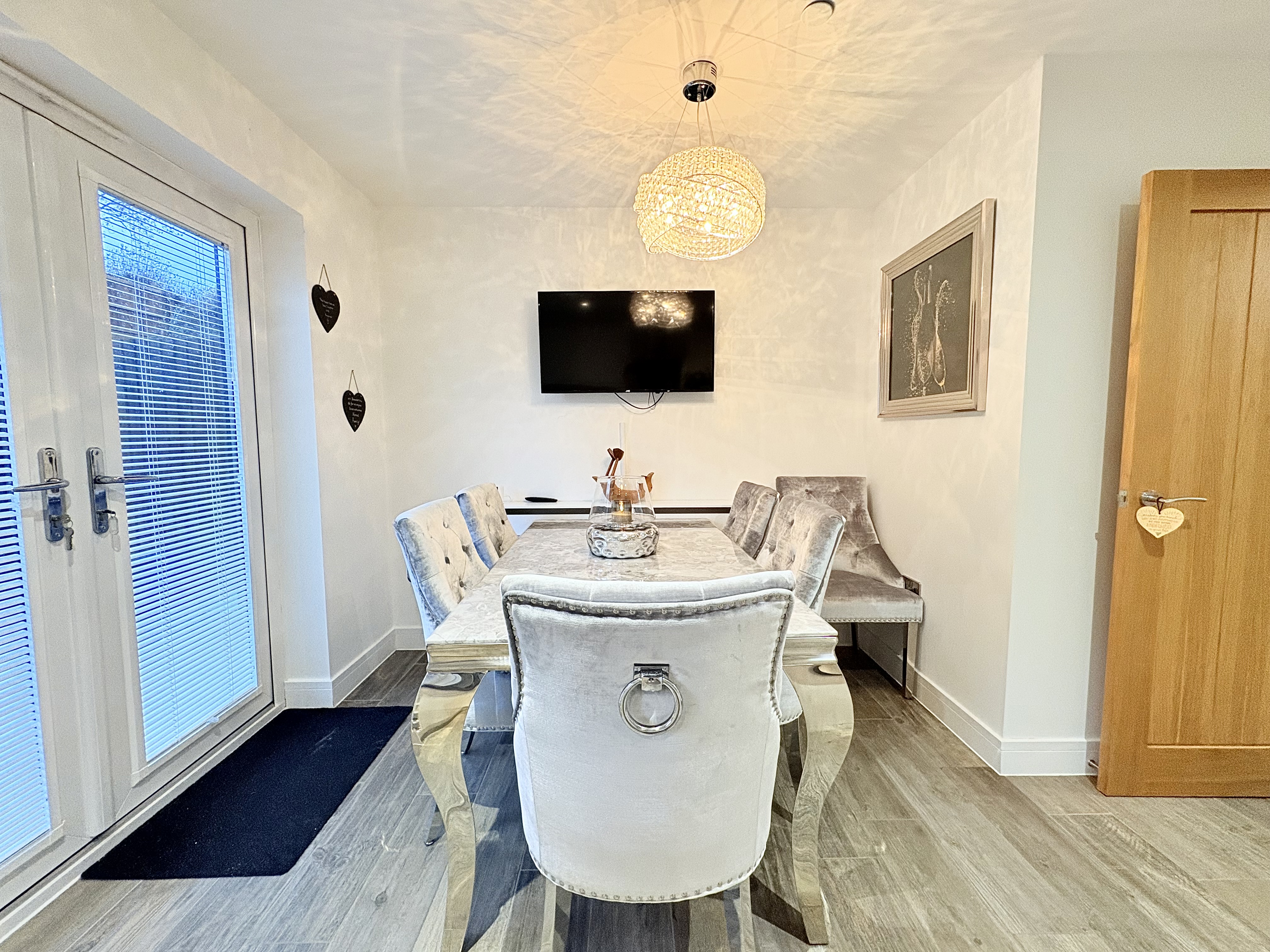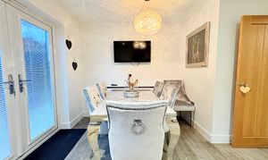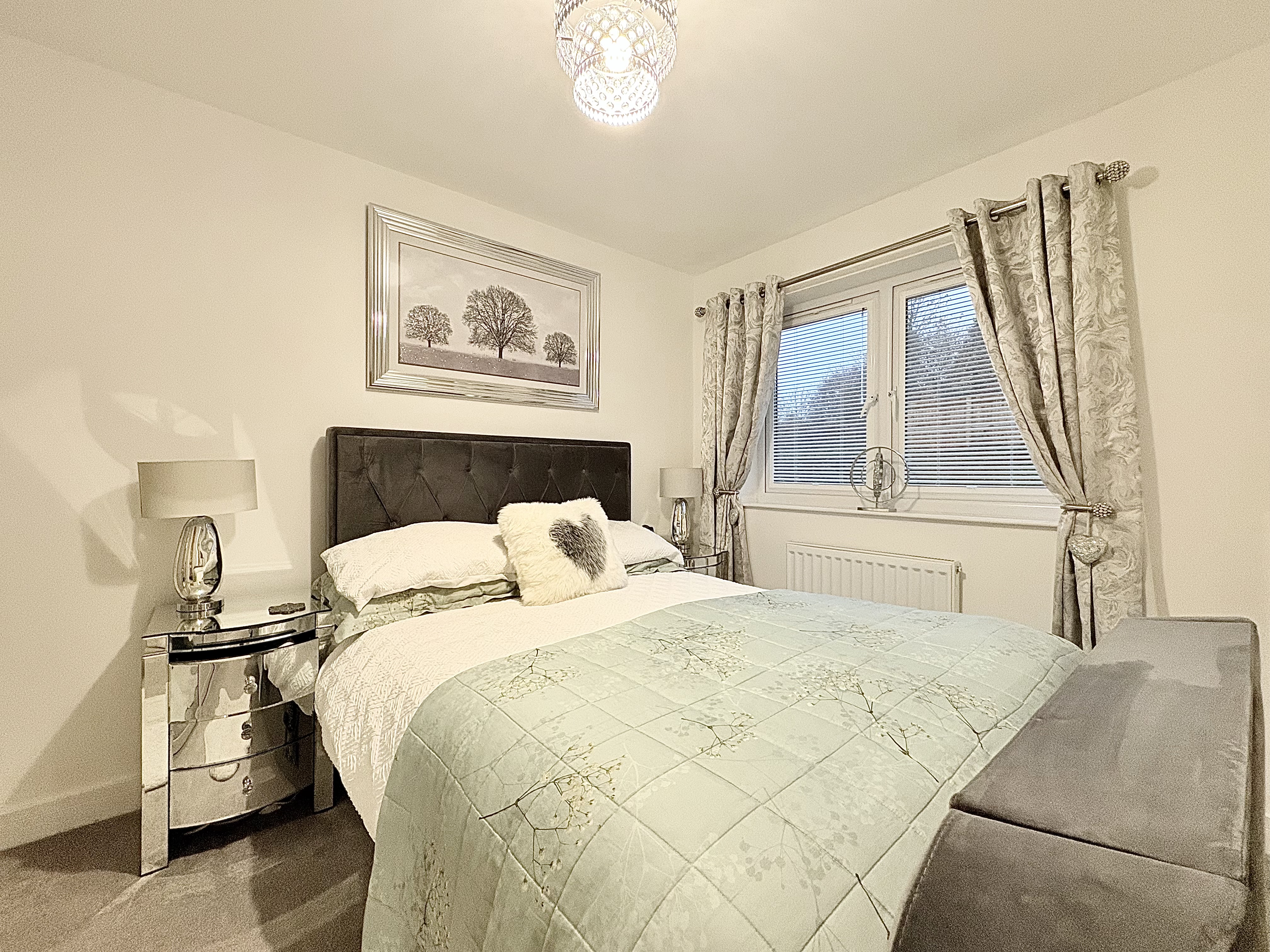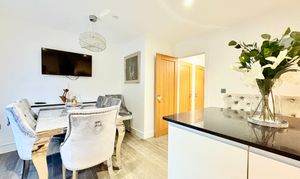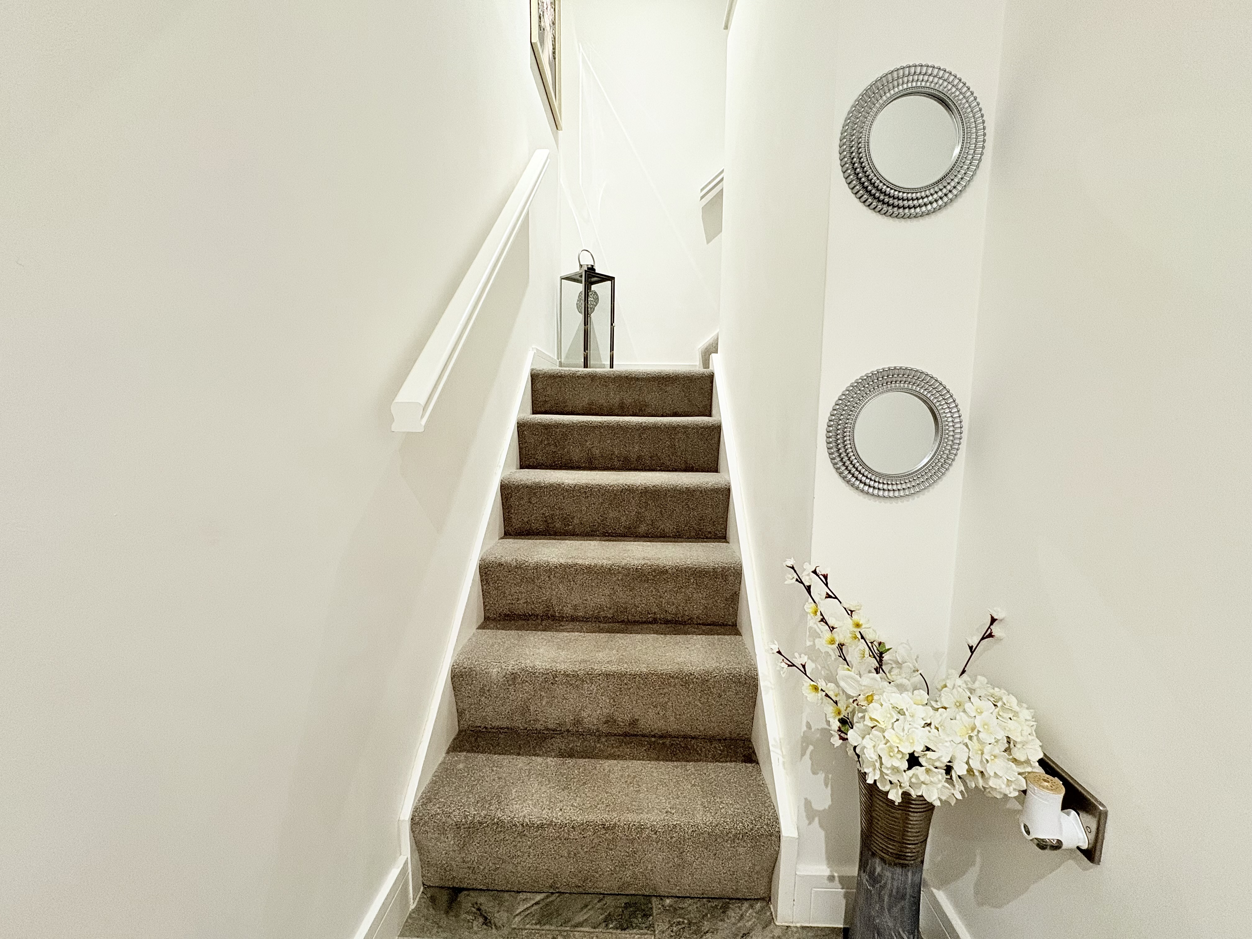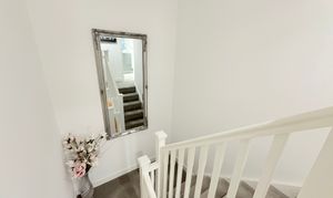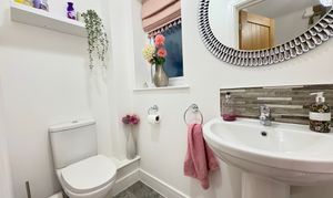 As you enter through the ground floor, you are greeted by a stunning interior, complete with a convenient internal garage capable of fitting one car. Moving to the first floor, the space opens up to reveal a well-appointed w/c, a practical storage cupboard, a spacious kitchen/diner boasting integrated appliances with an inviting island with a breakfast bar, and ample room for a dining table and chairs. The patio doors beckon you to step outside to the landscaped rear garden, where relaxation and entertainment meet seamlessly. The cosy living room has been decorated to a superb standard and offers a lovely Juliette balcony.