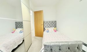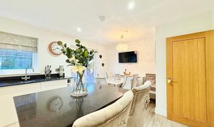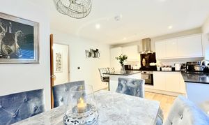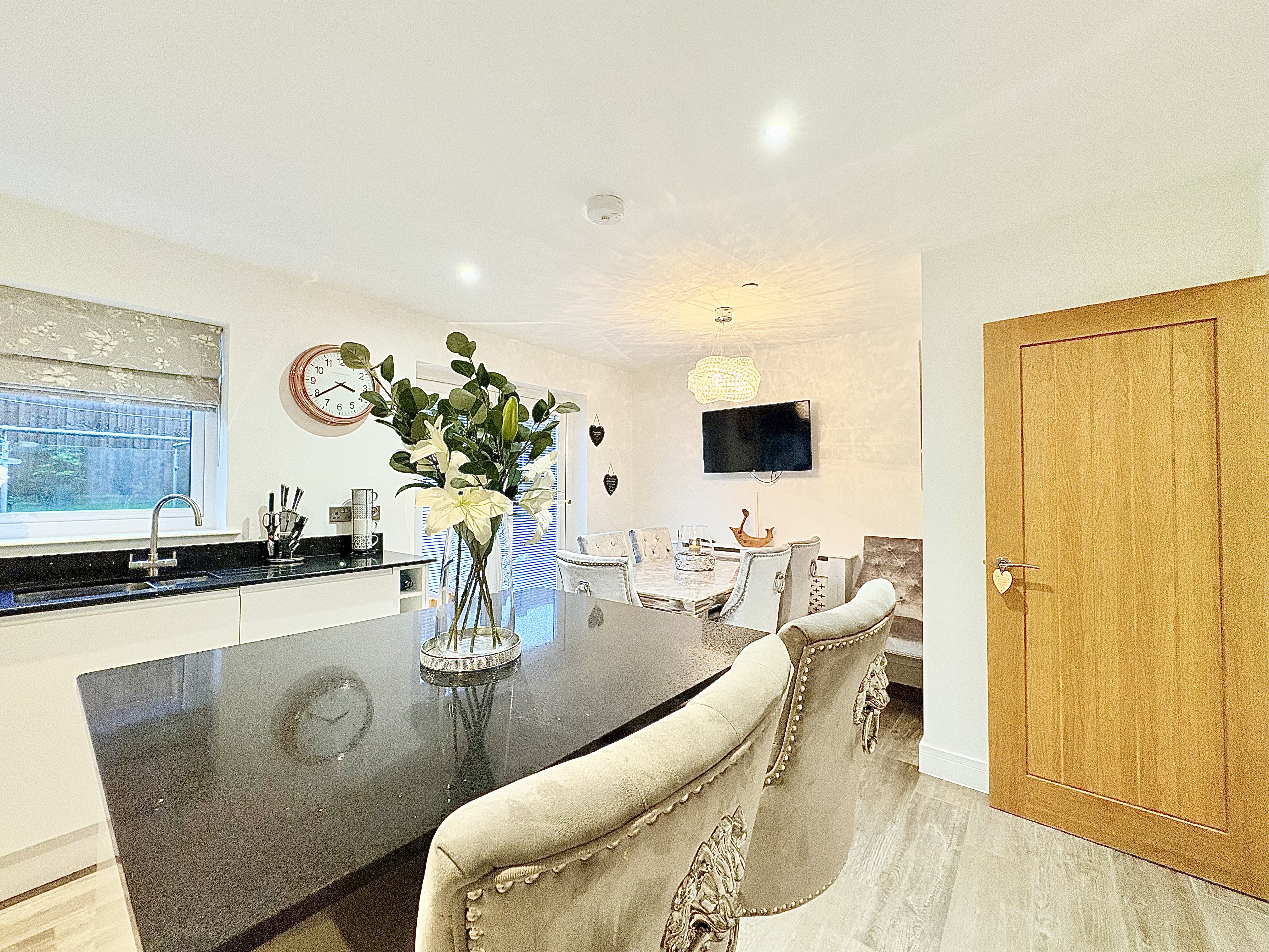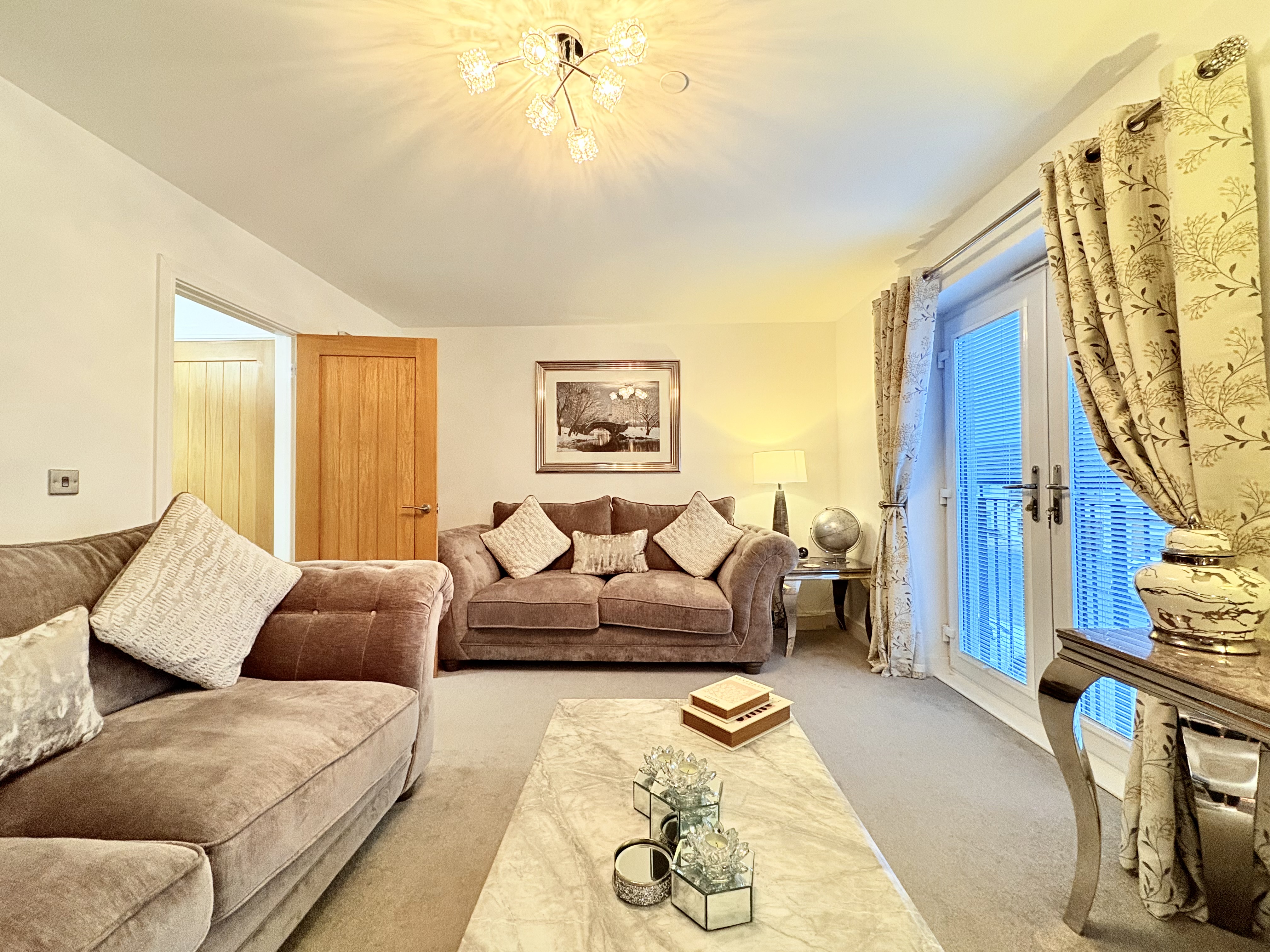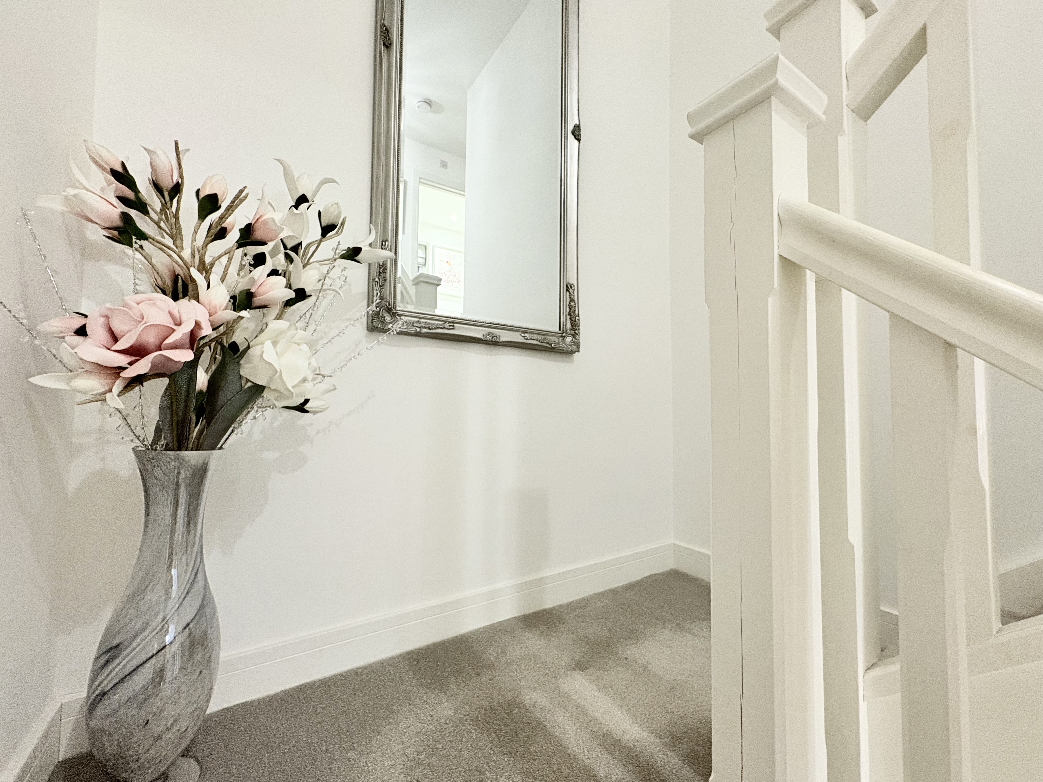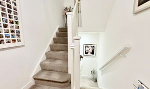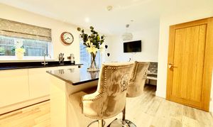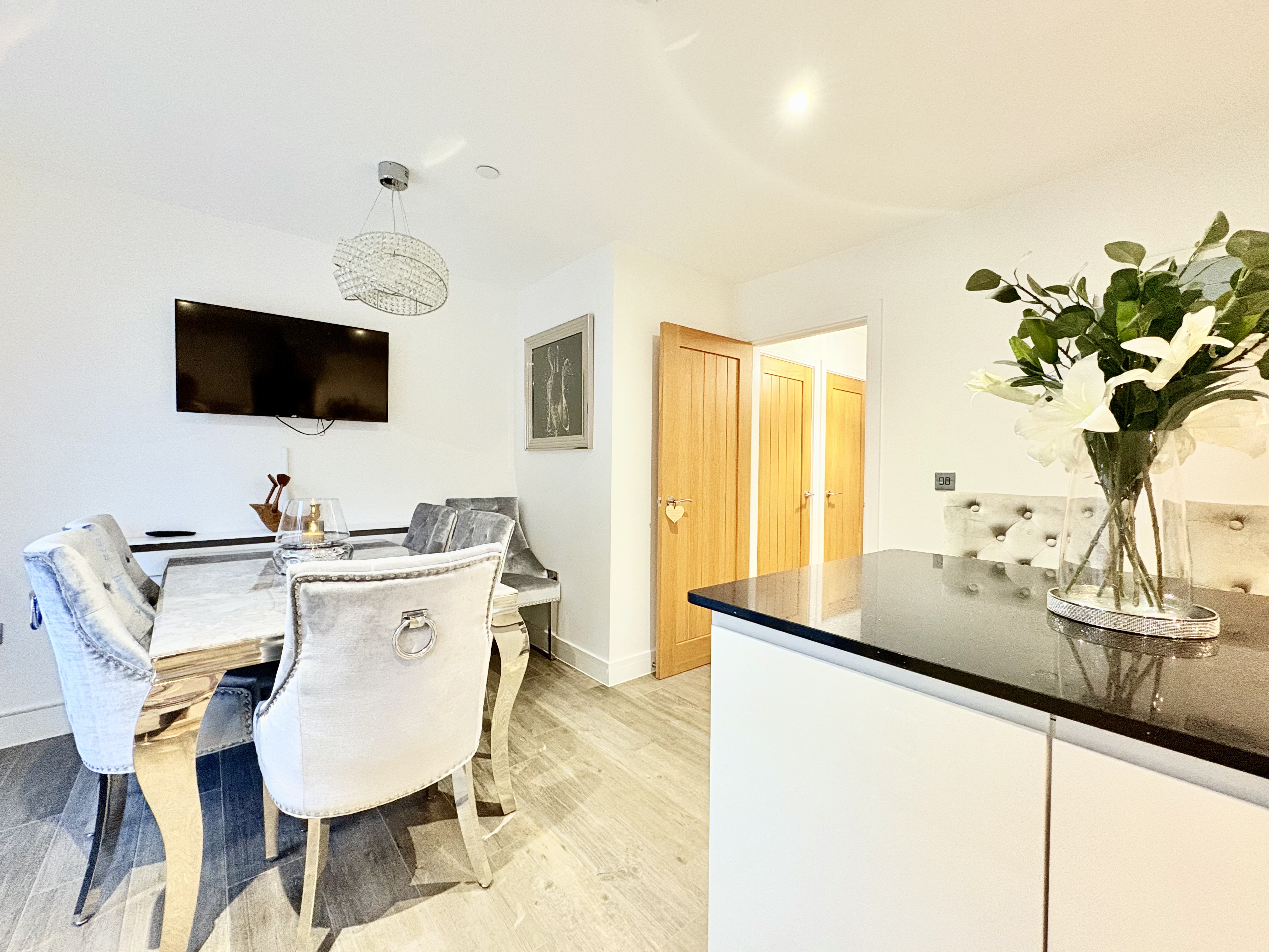 As you enter through the ground floor, you are greeted by a stunning interior, complete with a convenient internal garage capable of fitting one car. Moving to the first floor, the space opens up to reveal a well-appointed w/c, a practical storage cupboard, a spacious kitchen/diner boasting integrated appliances with an inviting island with a breakfast bar, and ample room for a dining table and chairs. The patio doors beckon you to step outside to the landscaped rear garden, where relaxation and entertainment meet seamlessly. The cosy living room has been decorated to a superb standard and offers a lovely Juliette balcony.