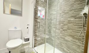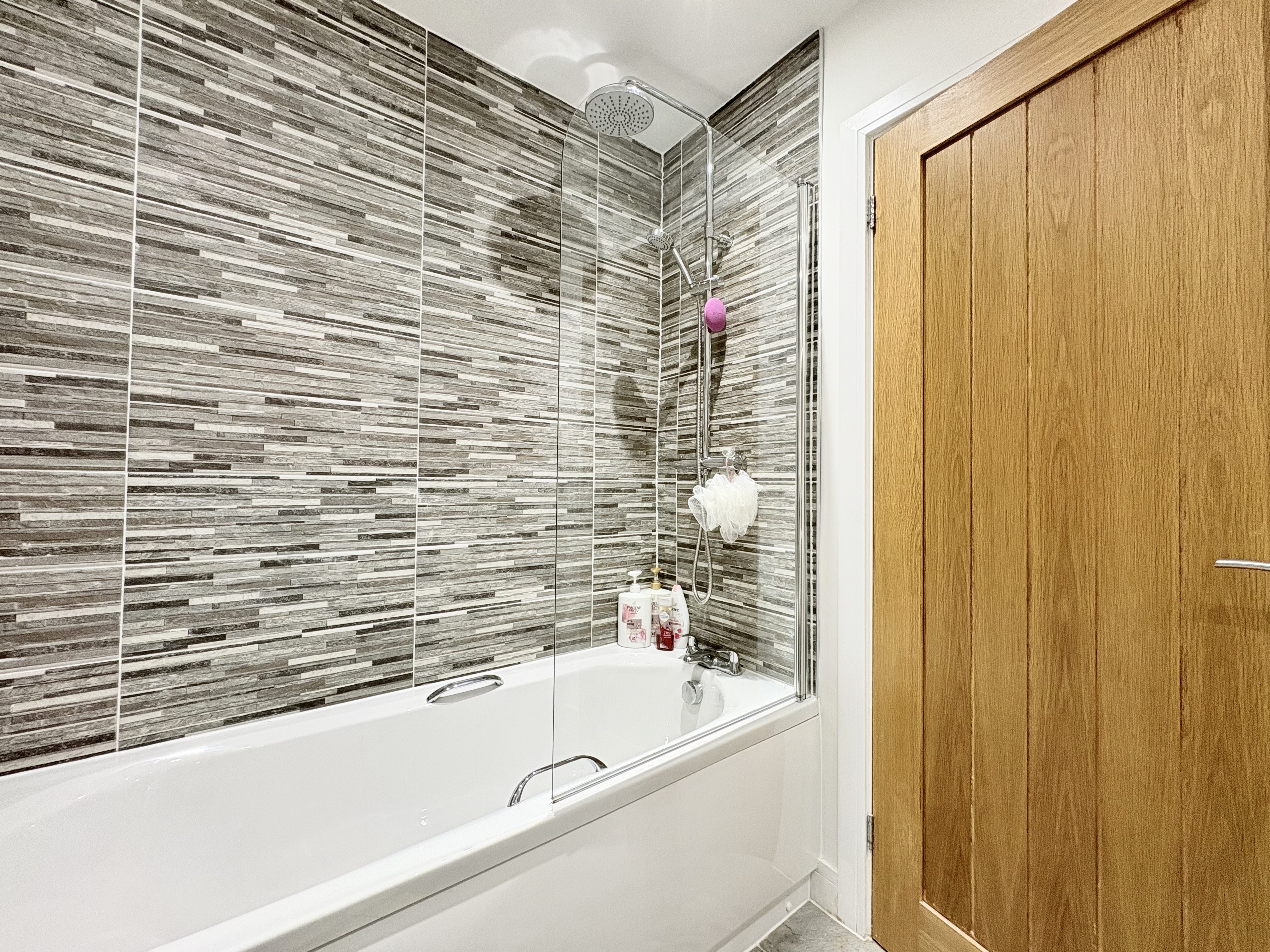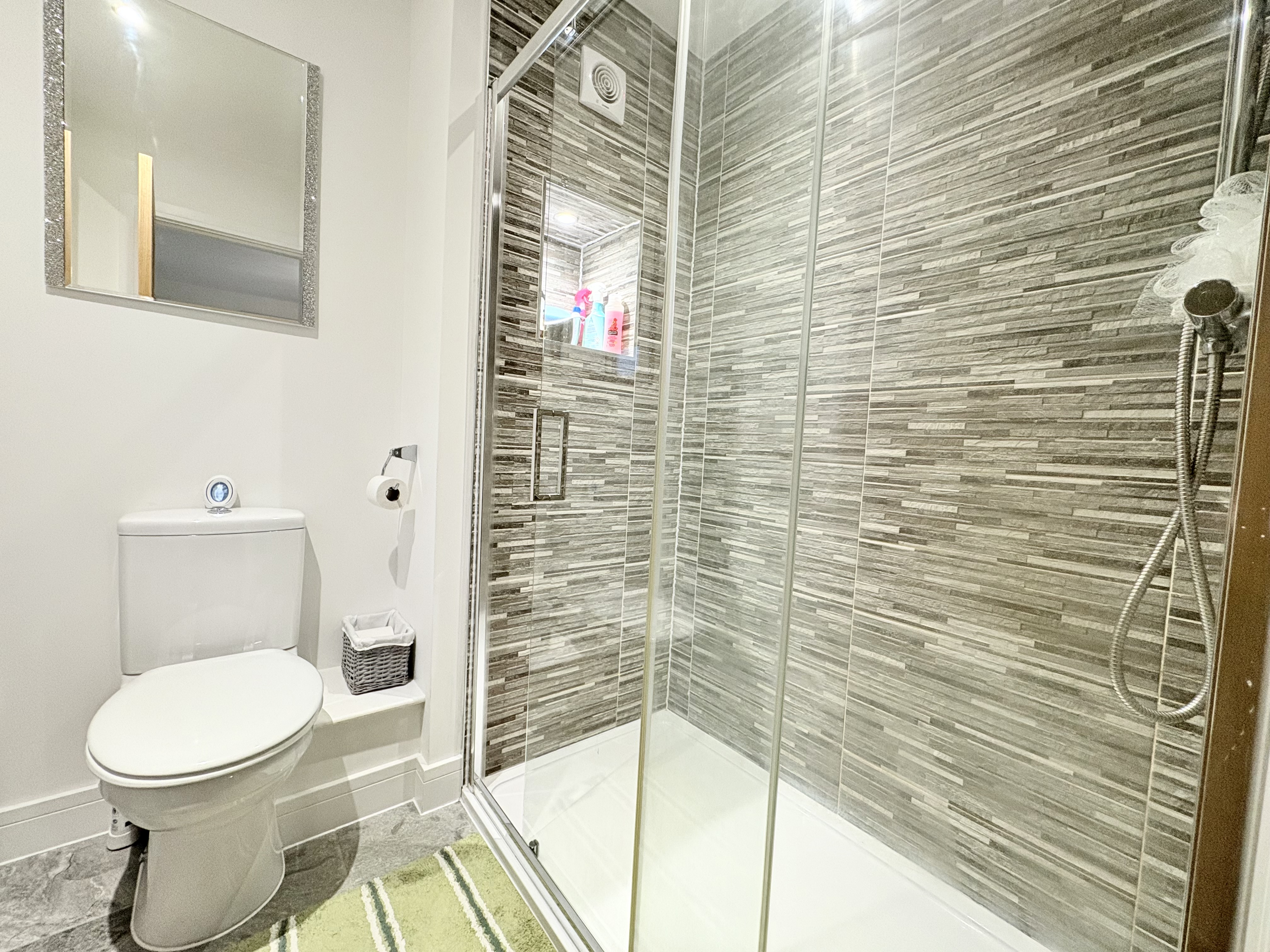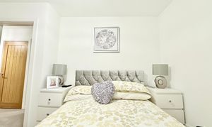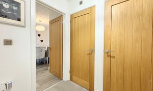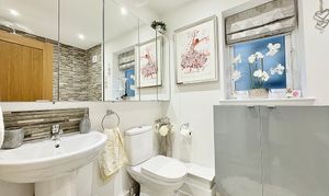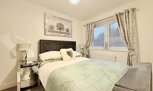 Ascending to the second floor, a luxurious master bedroom awaits, featuring built-in wardrobes and a modern ensuite with a sleek walk-in shower. The family bathroom continues the theme of excellence with its inviting bath, while the second double bedroom offers picturesque views of the property's front. The journey concludes with a cosy single bedroom overlooking the same charming vista.