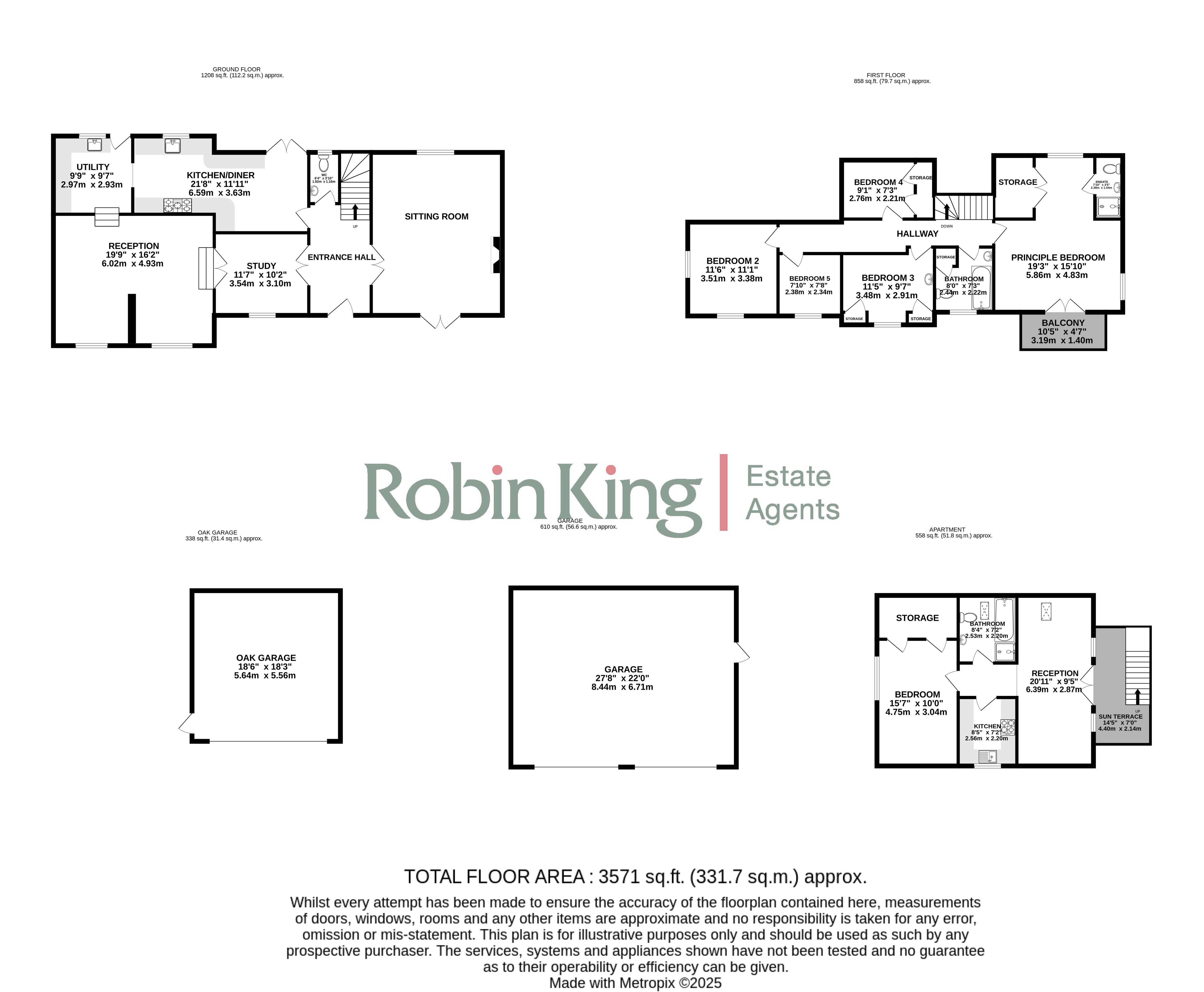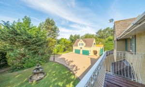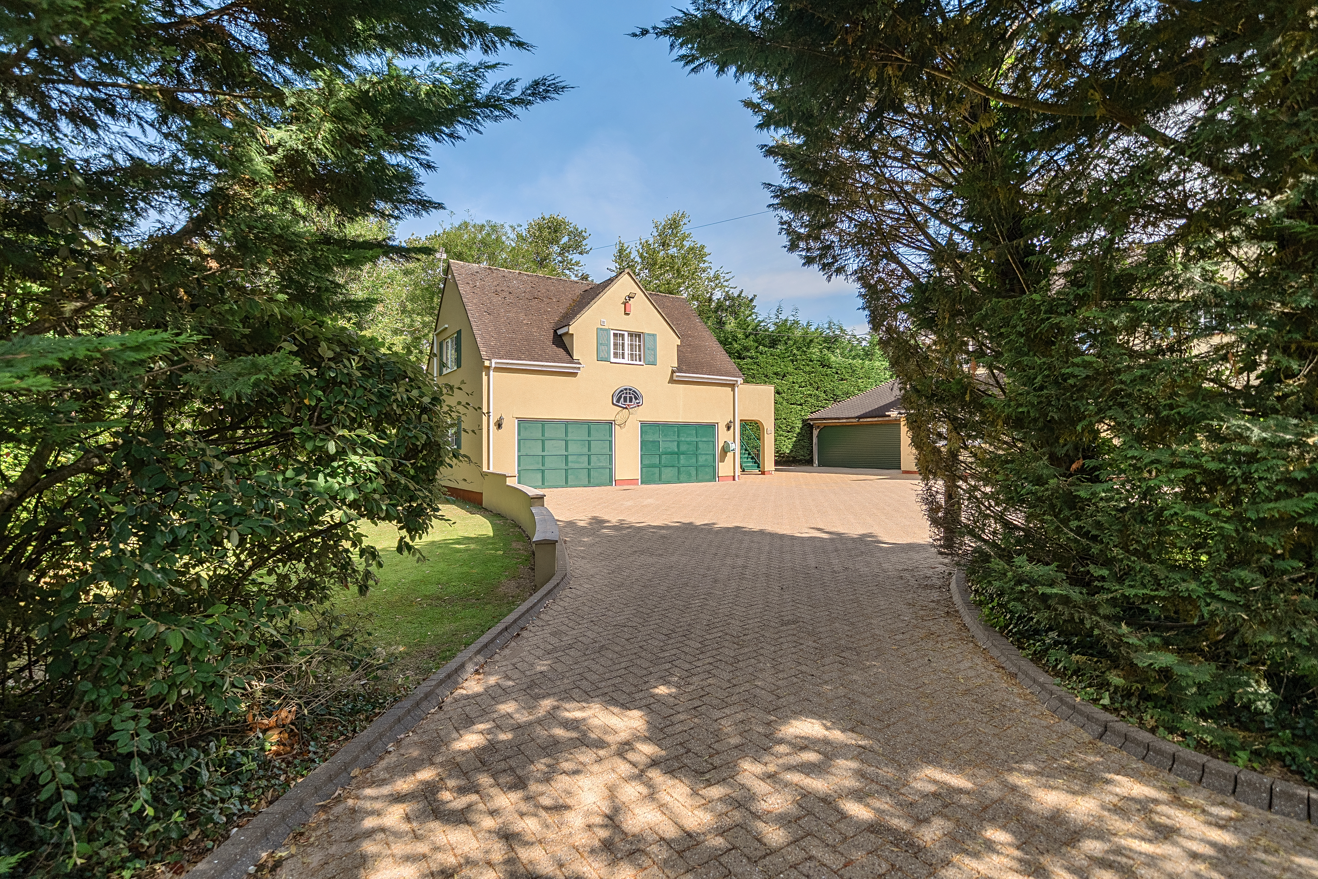 To the front, the expansive paved driveway provides excellent off-road parking and access to two detached generous double garages - one beneath the annexe and the other adjacent to the main house.