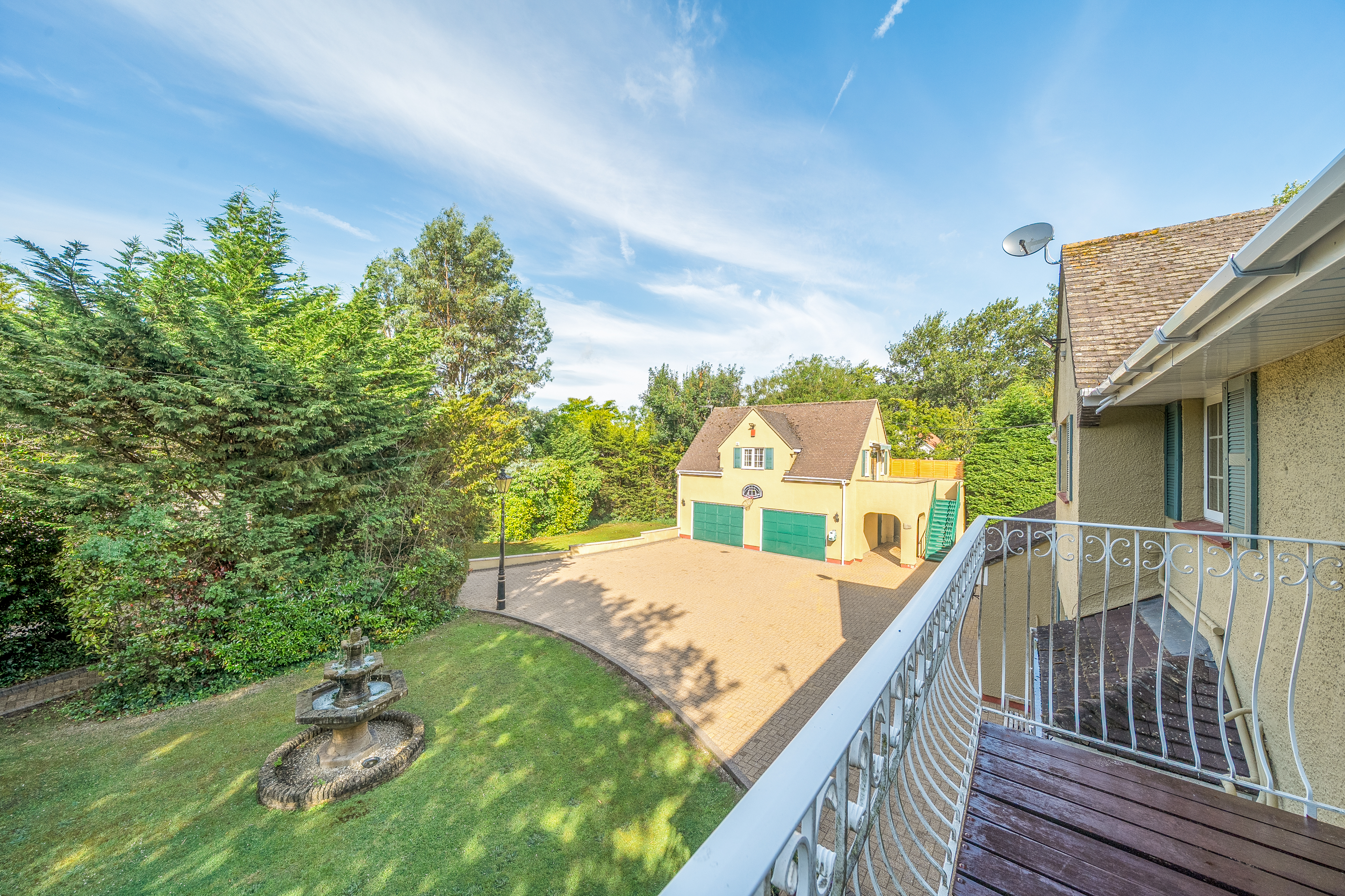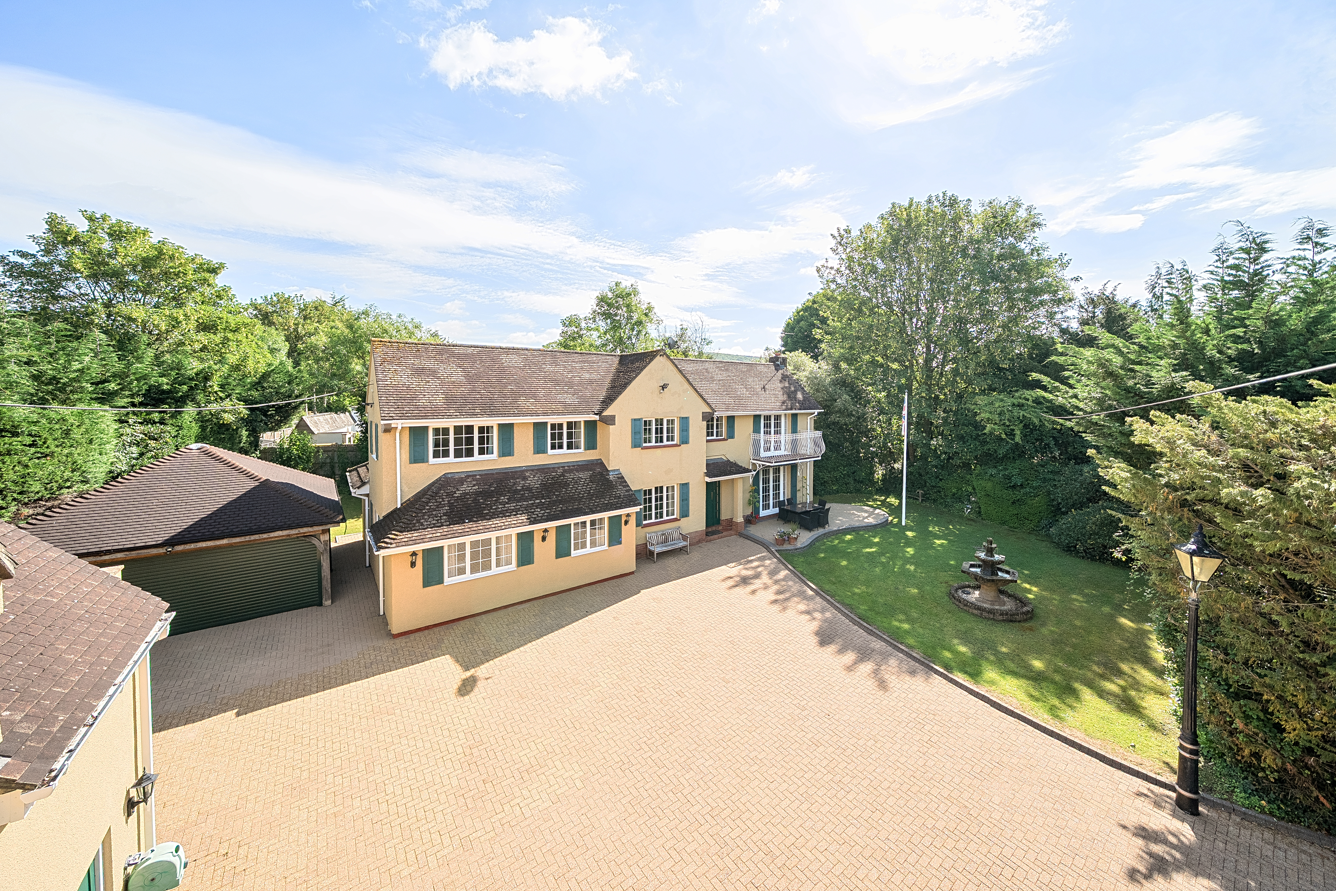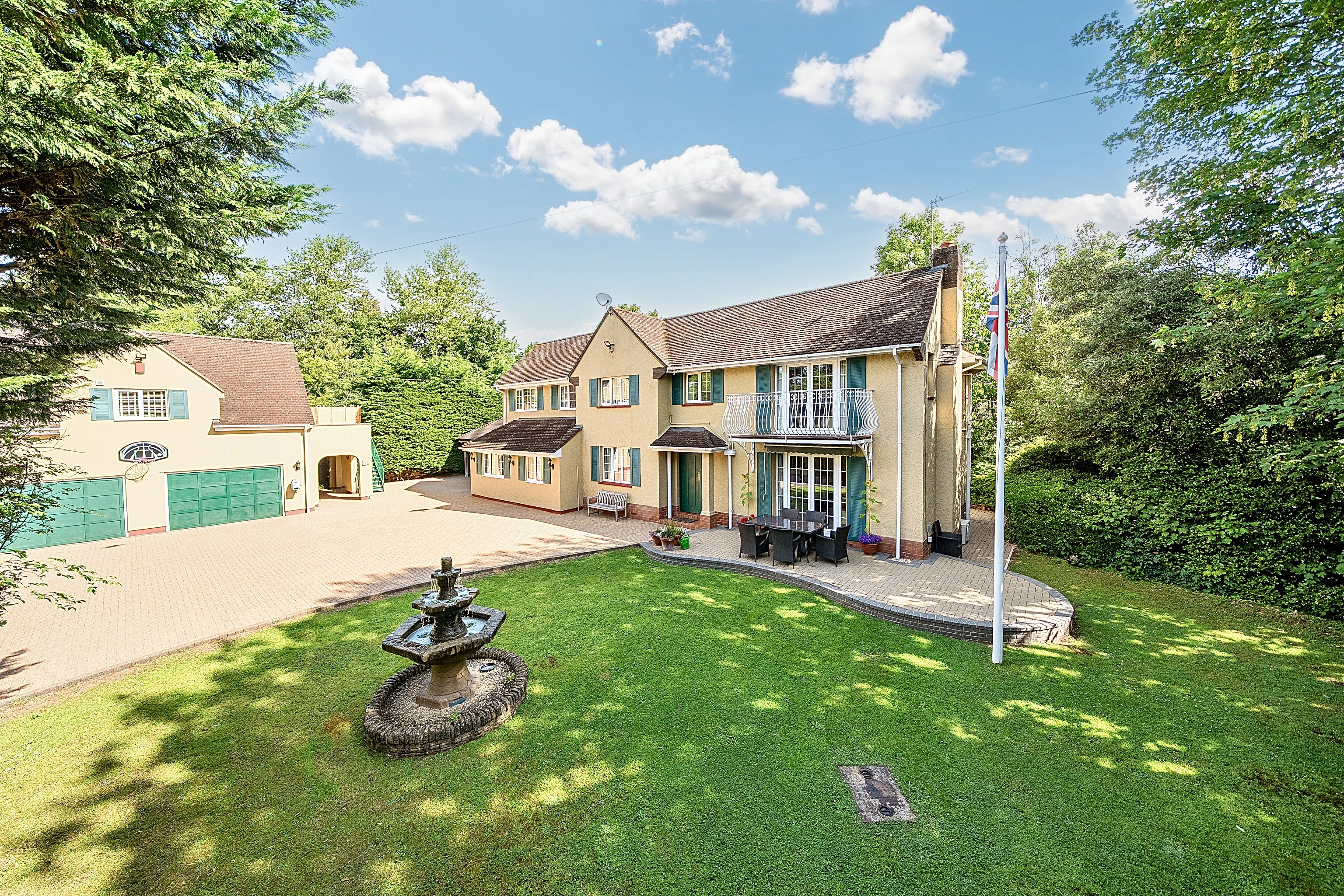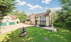 Accessed via secure electric gates, the property is approached via a sweeping driveway that immediately sets the tone—offering superb privacy, ample parking for numerous vehicles, and a turning circle around a classic fountain giving an impressive sense of arrival.