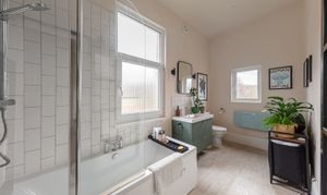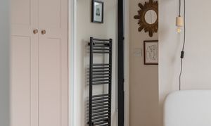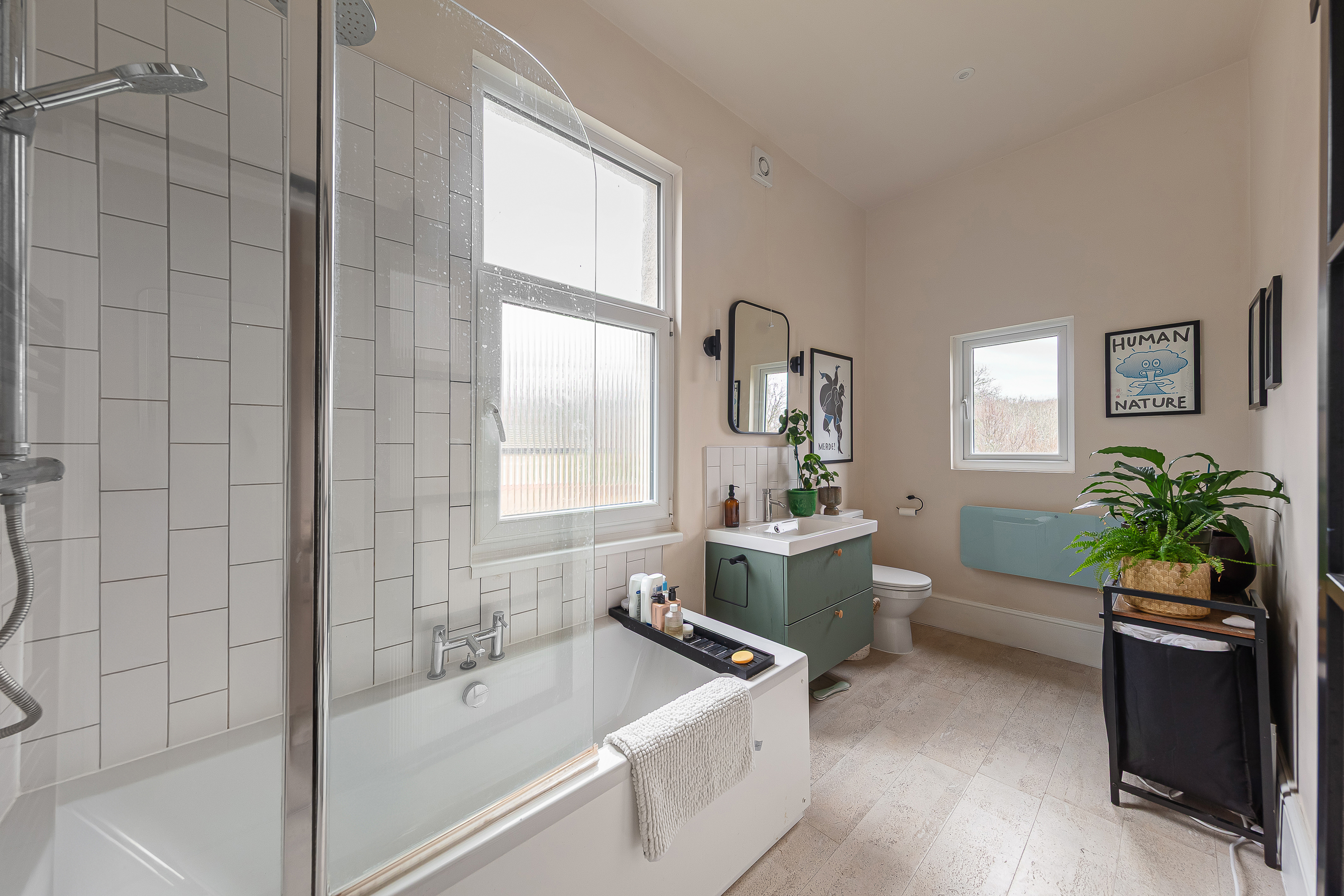 The bathroom is another unexpected highlight. Hugely generous in size, especially for a one-bedroom flat. There’s space to breathe, space to move, and a sense that this room has been given just as much attention as the rest of the flat — a detail that really elevates the home as a whole. There is a shower over a full-size bath, and not just one window, but two!