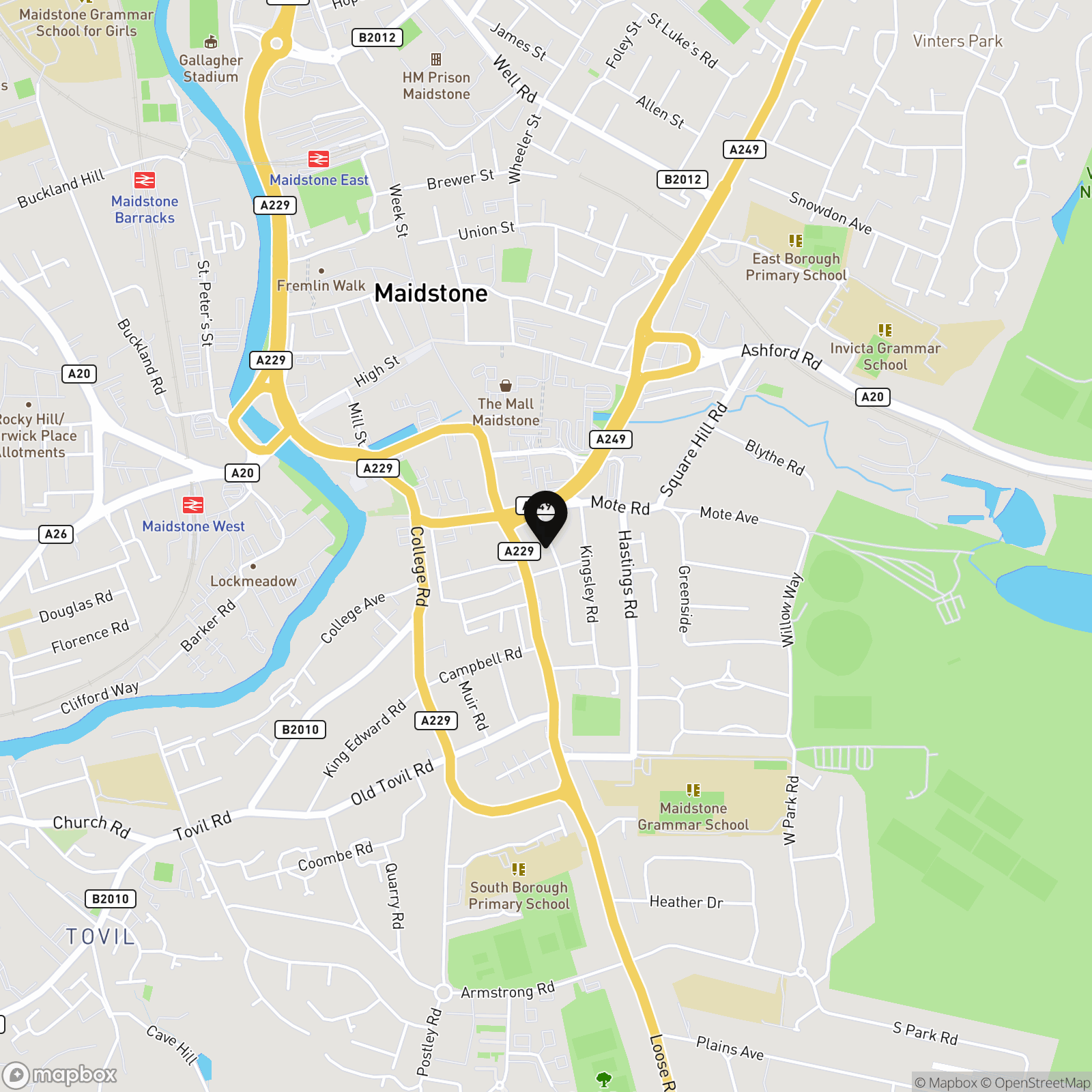 Maidstone is the county town of Kent in south-east England, sitting on the banks of the River Medway about 30 miles (48 km) east of London; it combines historic market-town character with modern shopping, culture and easy access to the Kent countryside. It has strong transport links for a regional centre: three railway stations in the town — Maidstone East, Maidstone West and Maidstone Barracks — provide regular trains to London (around an hour to London Victoria), Ashford International and other parts of Kent, while frequent Arriva and other bus services connect the town locally and to nearby towns. By road, the town is well served by major A-roads and the M20/M2 motorways linking to the M25, London, the Channel ports and the rest of the South East; coach services also operate to London and beyond. Together, these make Maidstone both a commuter hub and a gateway for exploring Kent and travelling nationally.