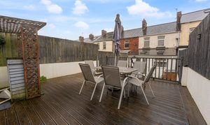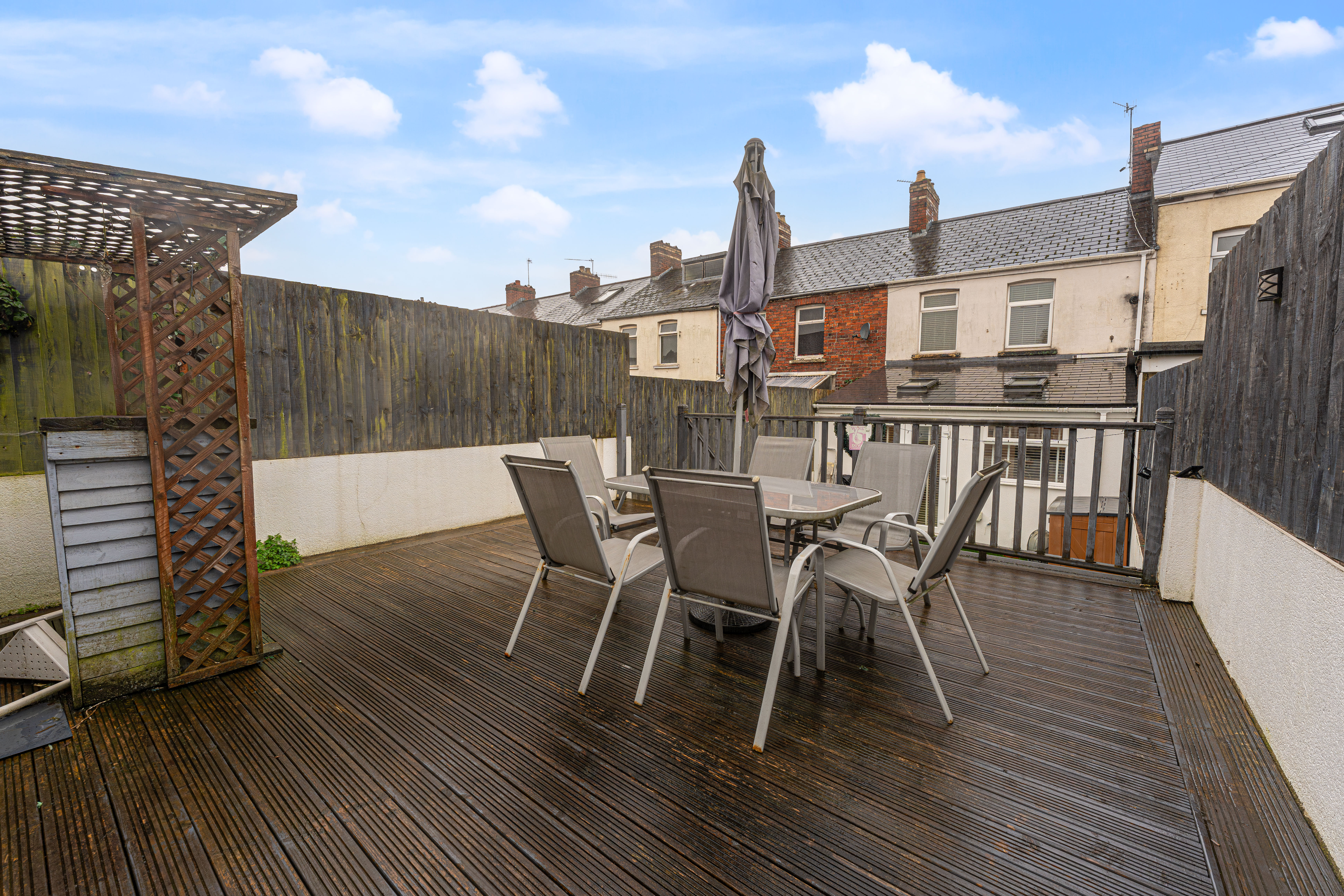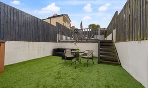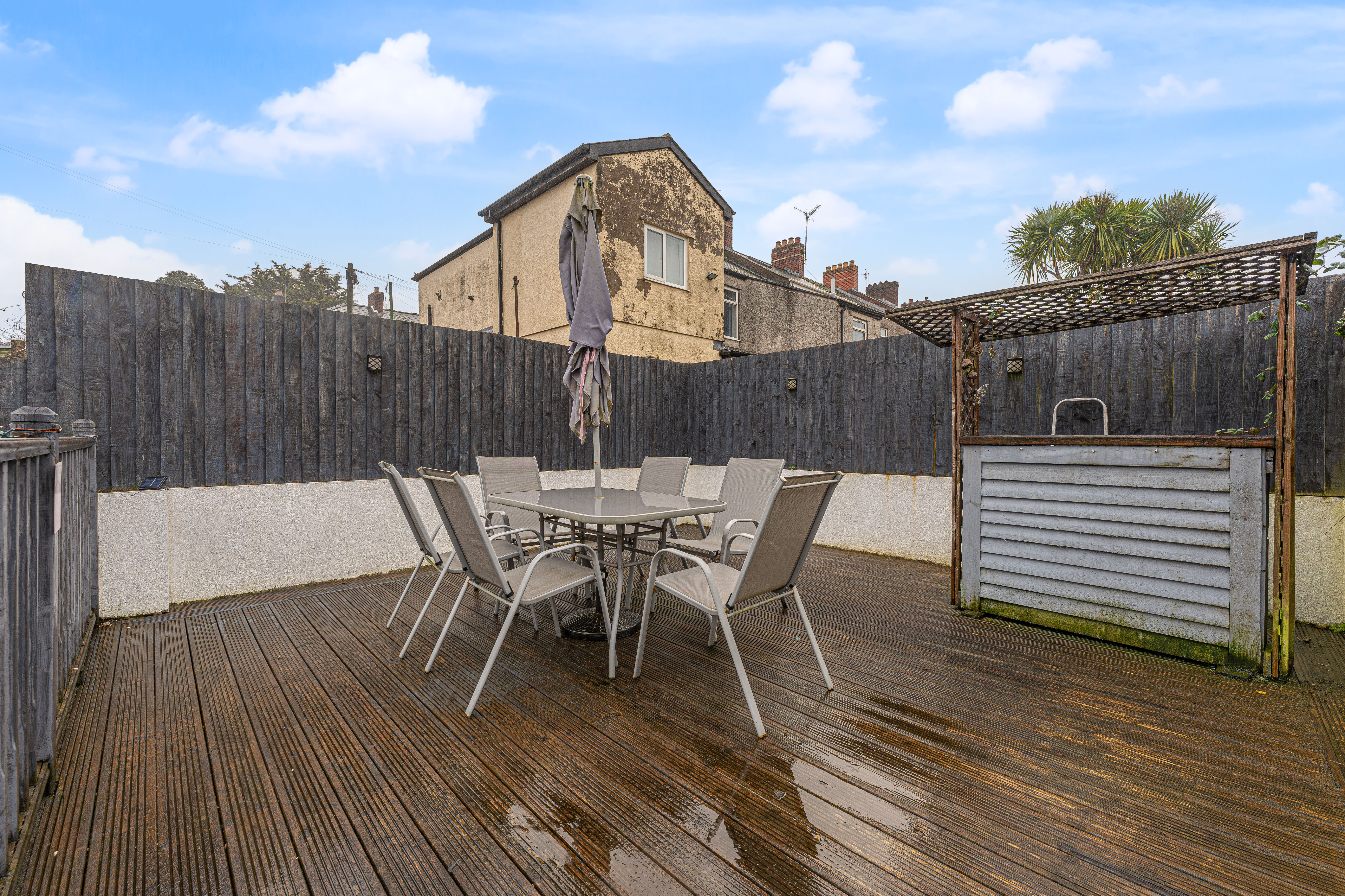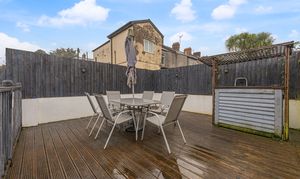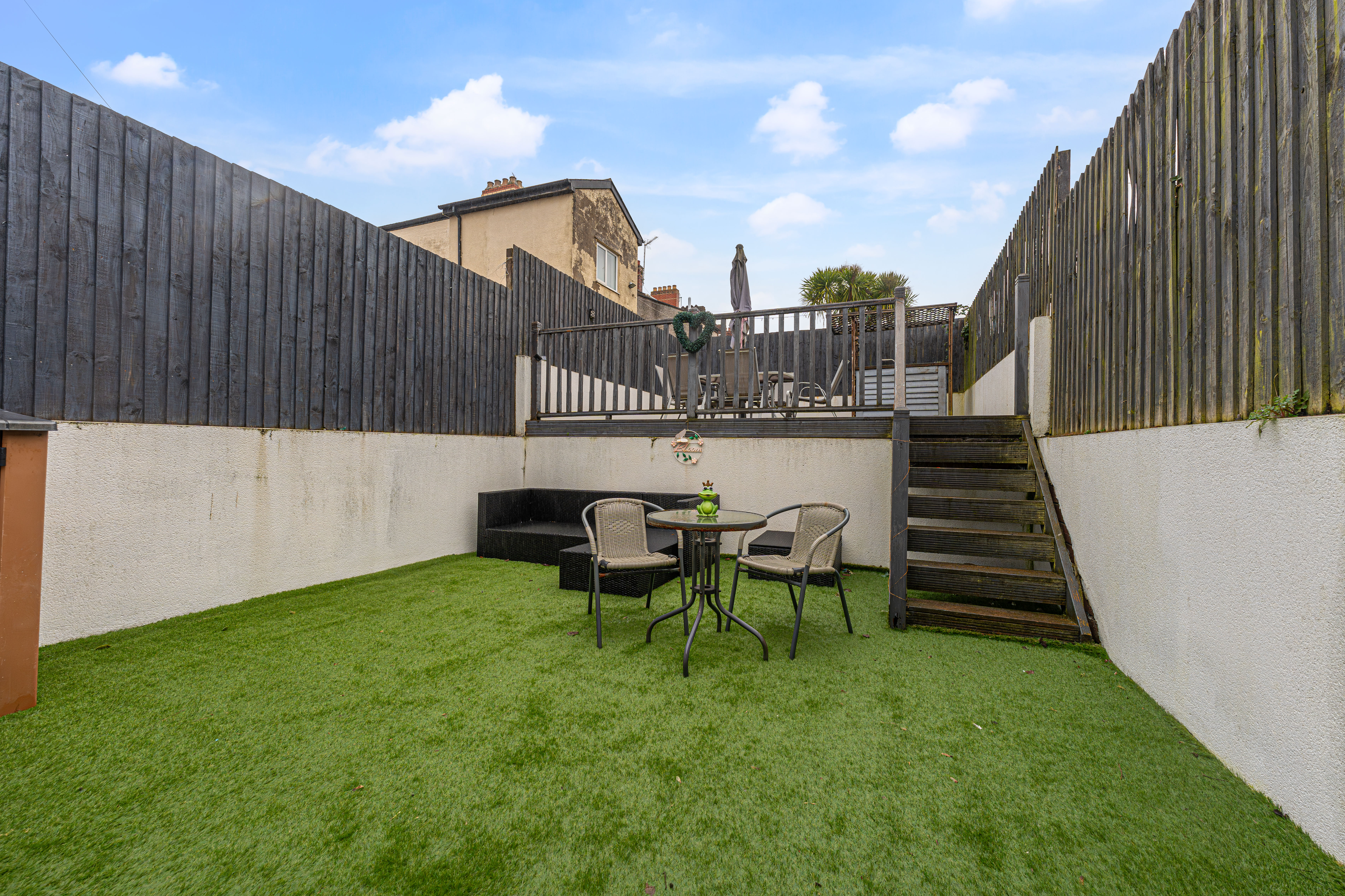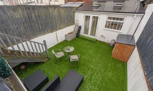 Stepping outside we have the spacious rear garden, which is fully enclosed and offers an abundance of space for residents to unwind after a long day. The garden itself consists of a large patio, currently turfed by a low maintenance artificial lawn, with steps up to a sizeable decking area which is ideal for al-fresco dining, sunbathing and welcoming guests. On road parking is available to the front of the house.