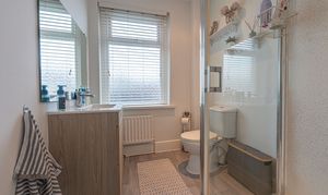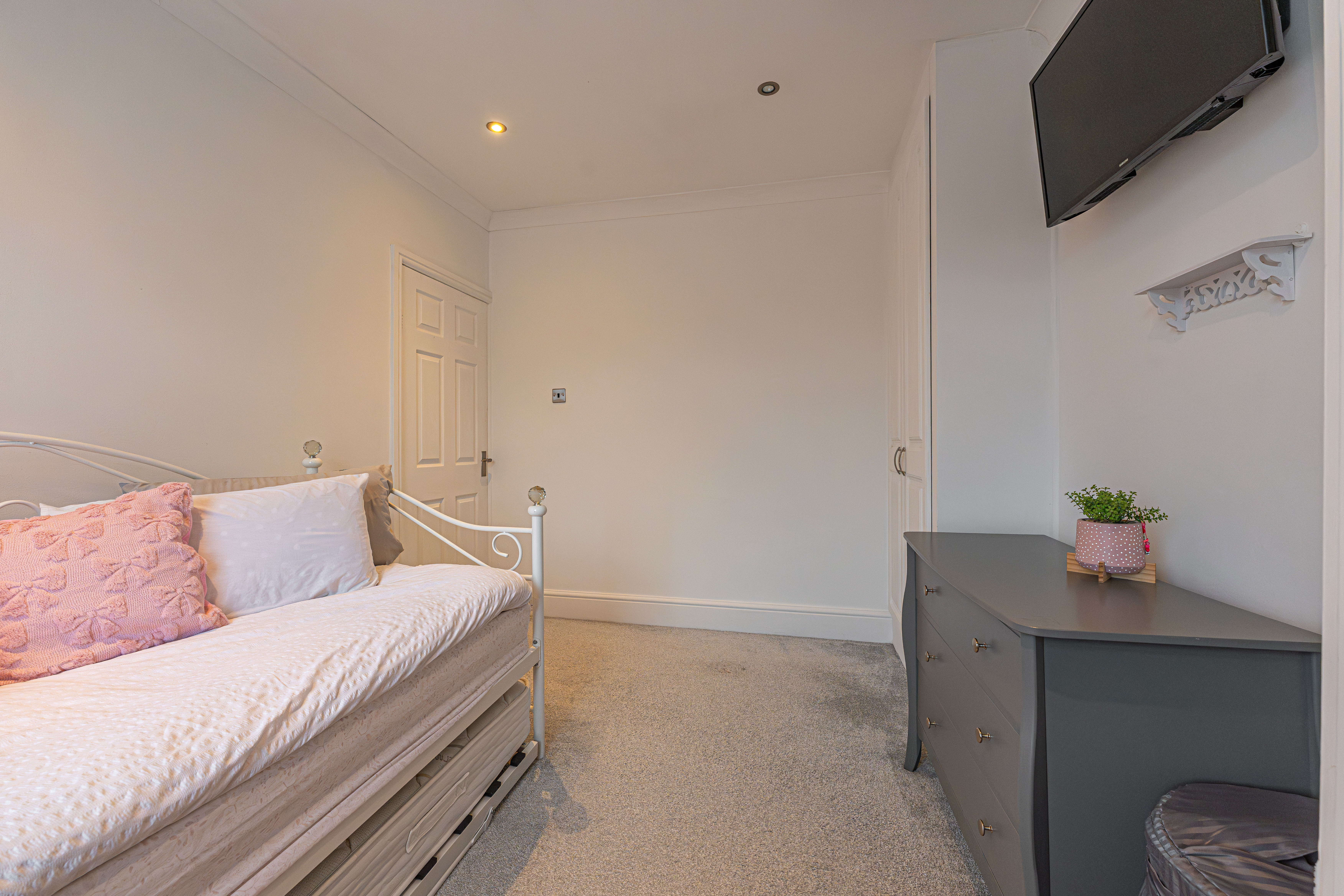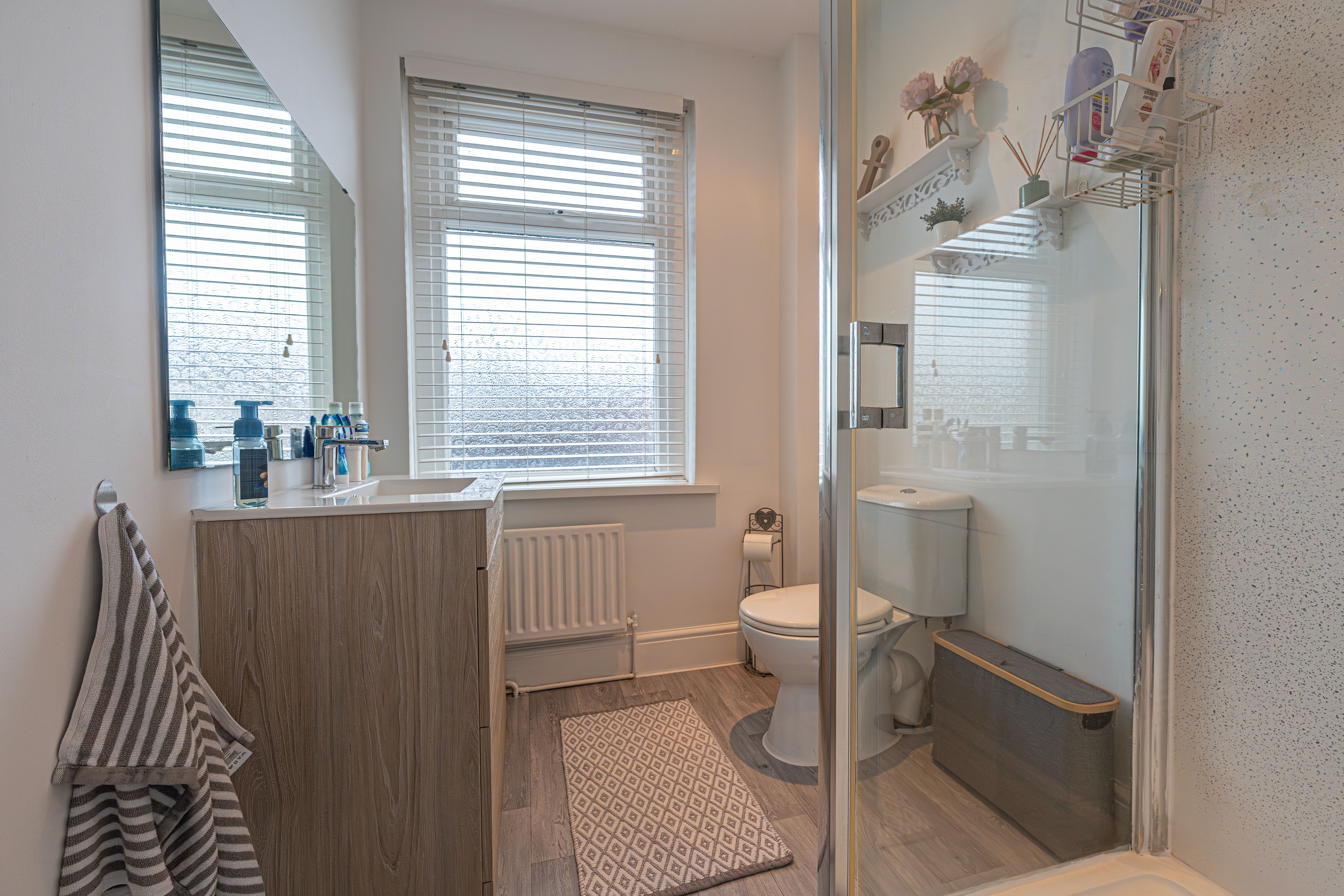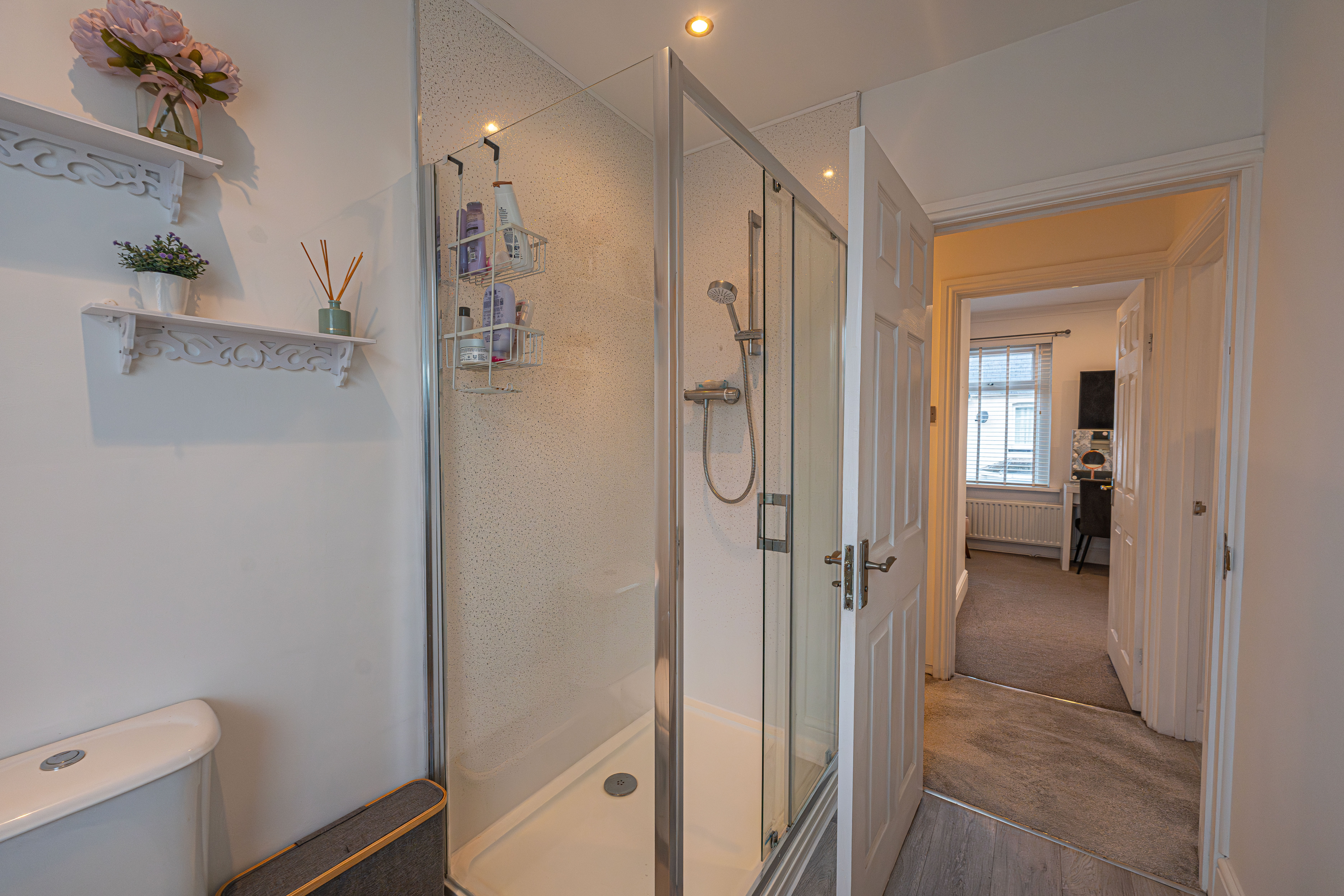 Upstairs we find two well sized double bedrooms, with residents benefitting from plenty of storage options with multiple fitted wardrobes. The primary bedroom enjoys a superior size and double aspect windows that light up the room. The stylish design continues into the family bathroom found from the landing, which features a toilet, vanity sink, and walk-in shower unit. The property also features an attic for great storage and conversion potential.