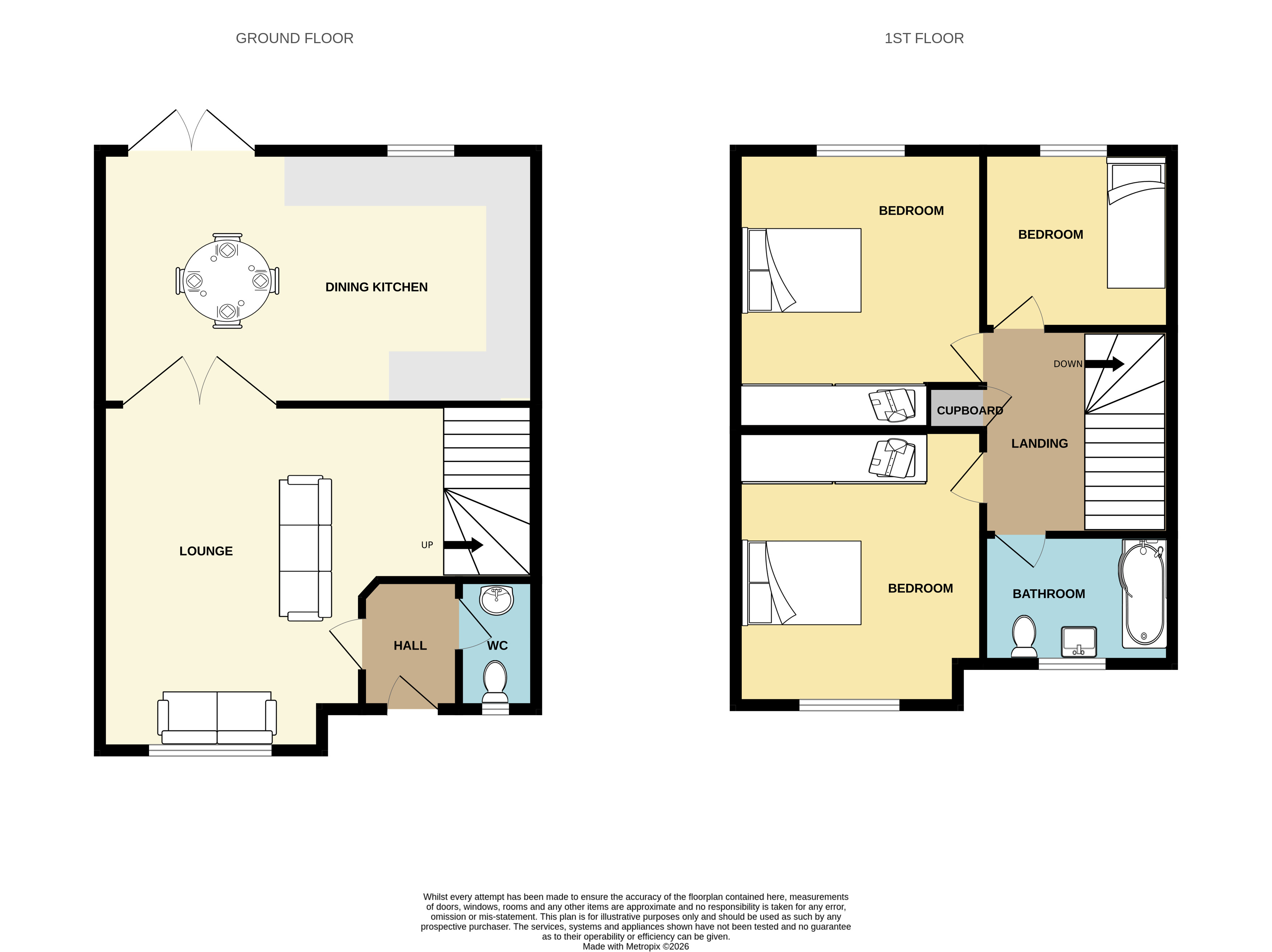 - Three bedrooms, including two doubles with wardrobes