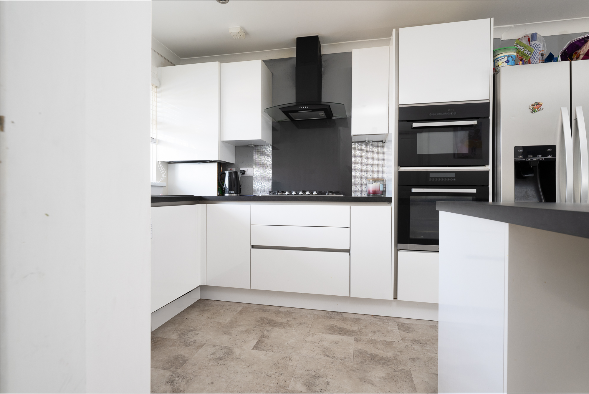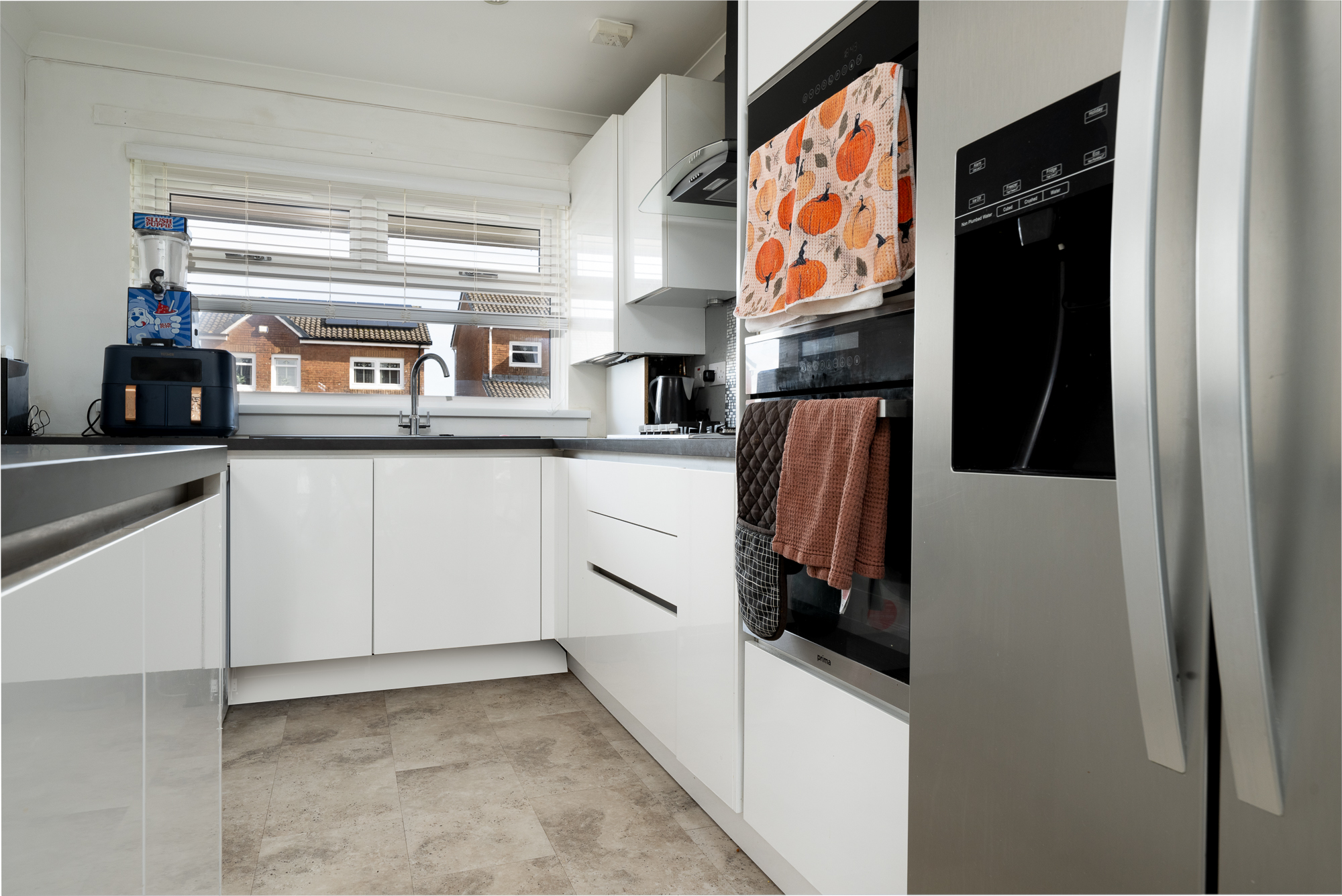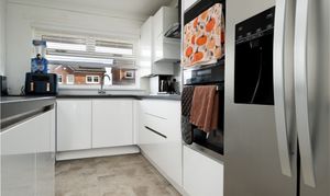 The kitchen is fresh, modern and thoughtfully laid out, offering both style and practicality. With its clean lines and bright finish, it is a space that makes cooking feel like a pleasure rather than a task.