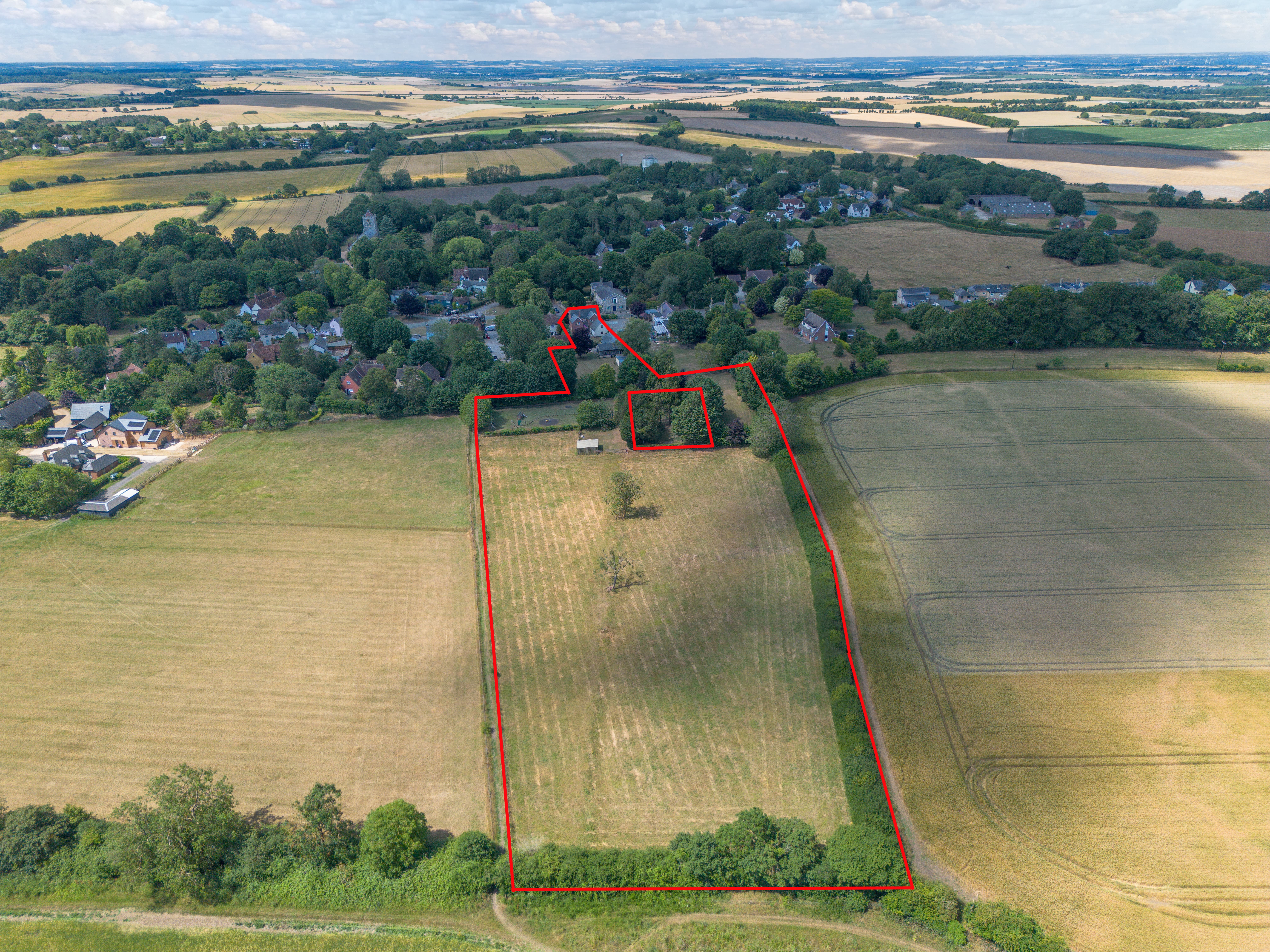 The play area in the pictures is a small part of the overall offering and is leased to Therfield Parish Council for a children’s play park. The lease is at a peppercorn rent and expires in 2029 with no rights for the tenant to renew. There will be a restrictive covenant prohibiting residential development on the undeveloped land.