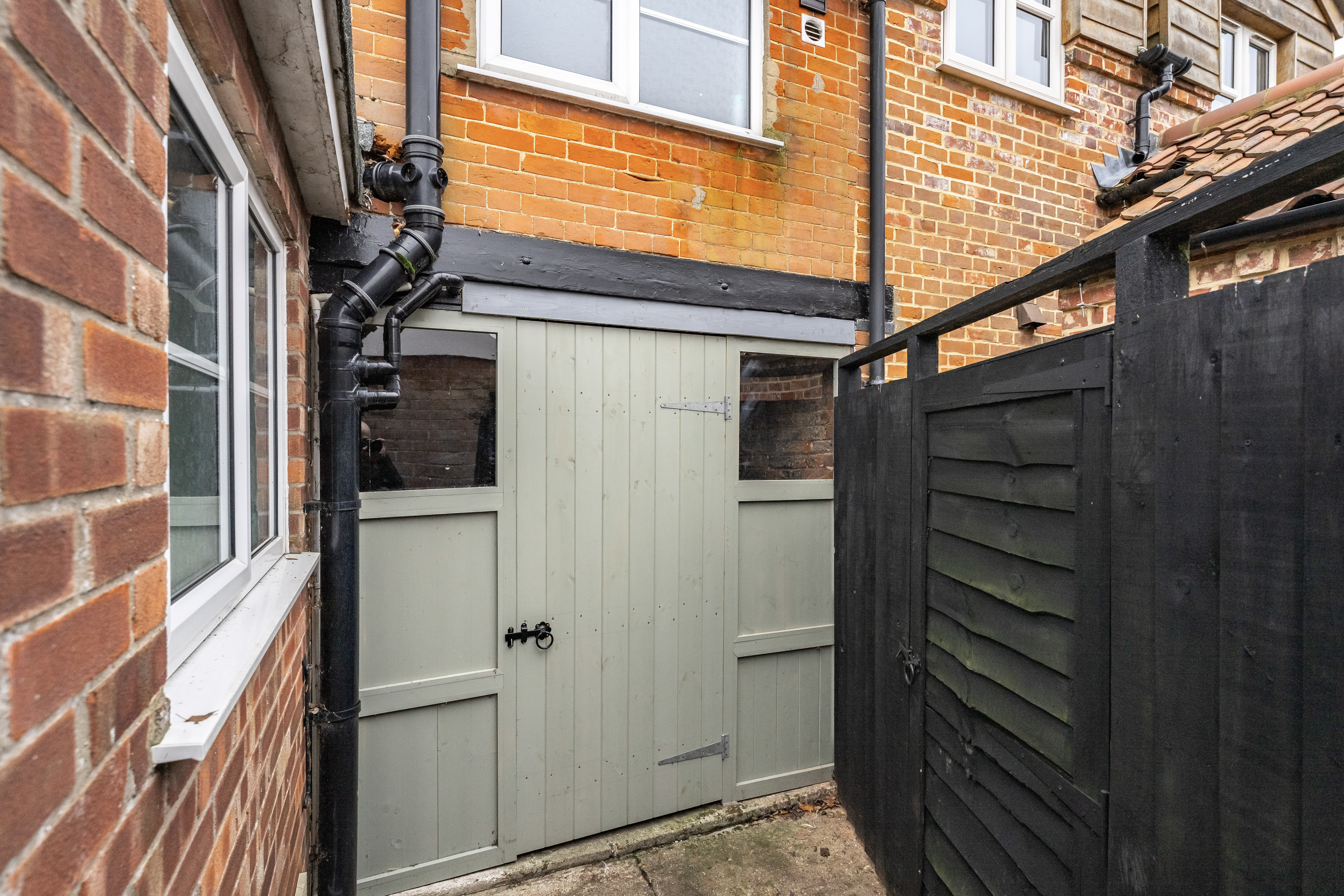 The front of the property provides convenient on-street parking and access through side-opening wooden gates to a generous storage area, which extends to the rear garden. Please note there is a right of way for the neighbouring property through this area.