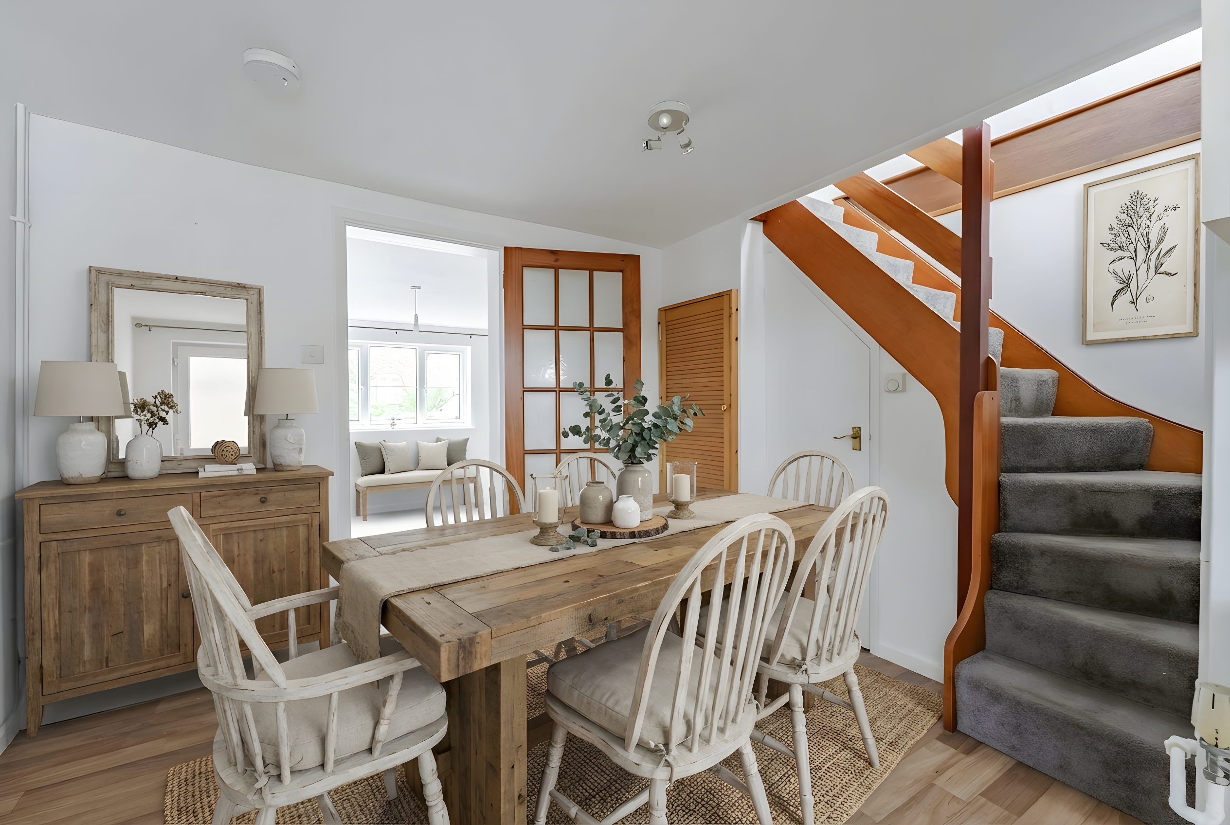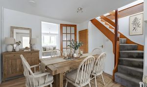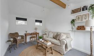 At the front of the cottage, the lounge provides a cosy yet elegant living area, featuring a decorative fireplace and a wood burner for ambiance. The lounge offers a versatile space to relax or entertain, perfectly balancing period character with modern comfort.