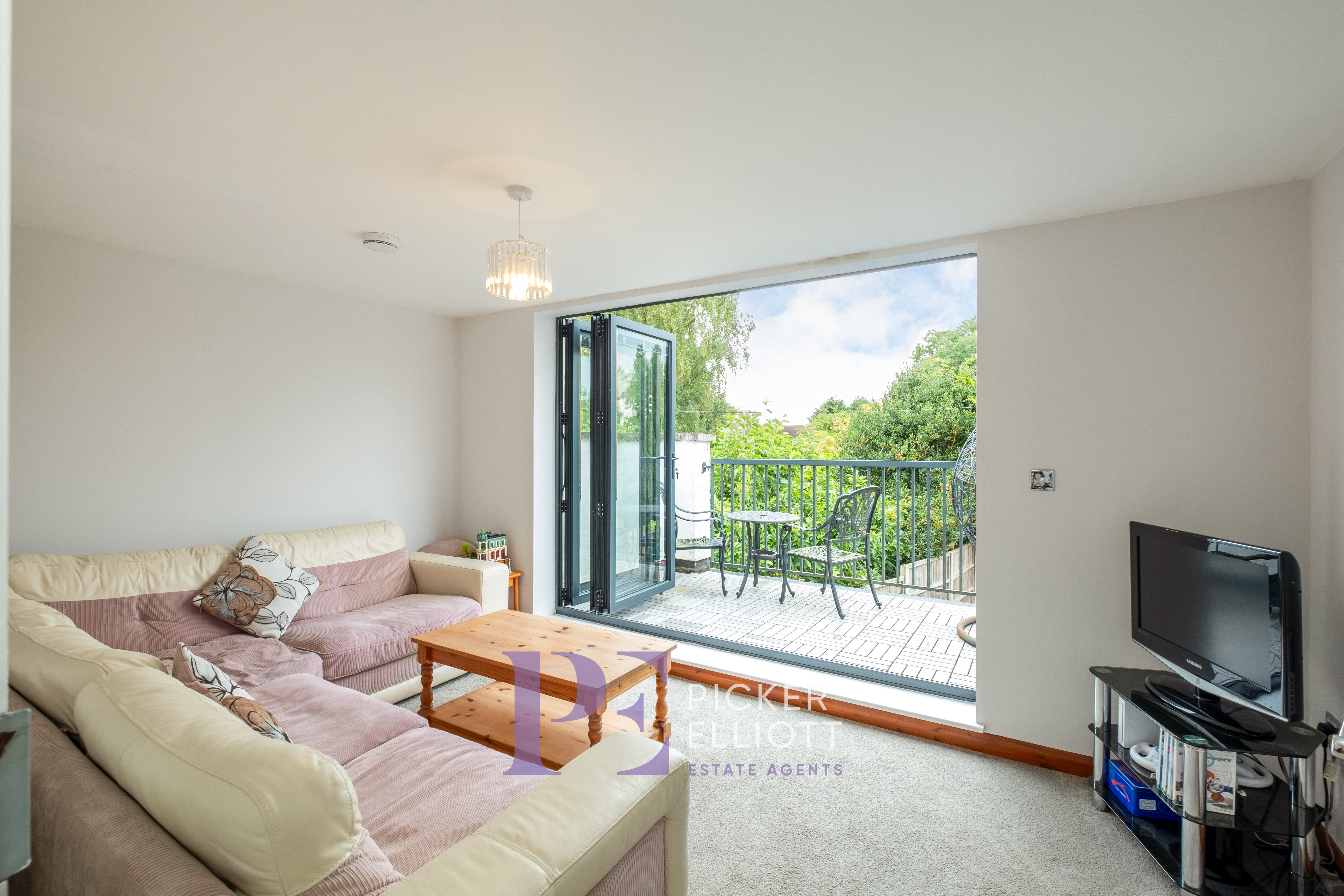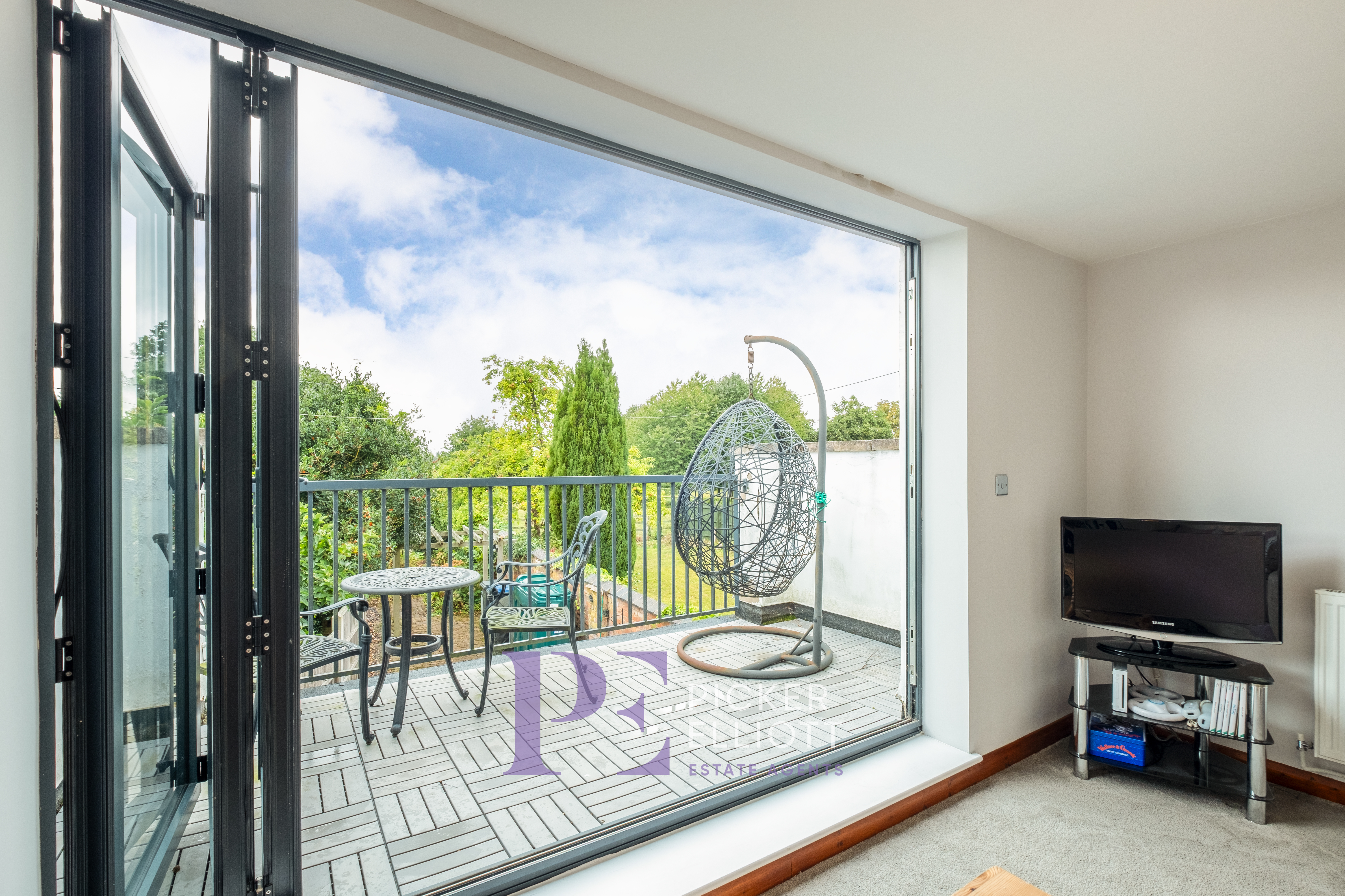 A series of flexible rooms currently set up with a bed in the smaller room and reception room in the larger room. This provides scope for a separate living area for older children, or relatives. This particular room has carpeted flooring, a central heating radiator and UPVC double glazed bi-folding doors opening to a large balcony with views out over the garden and countryside beyond.