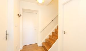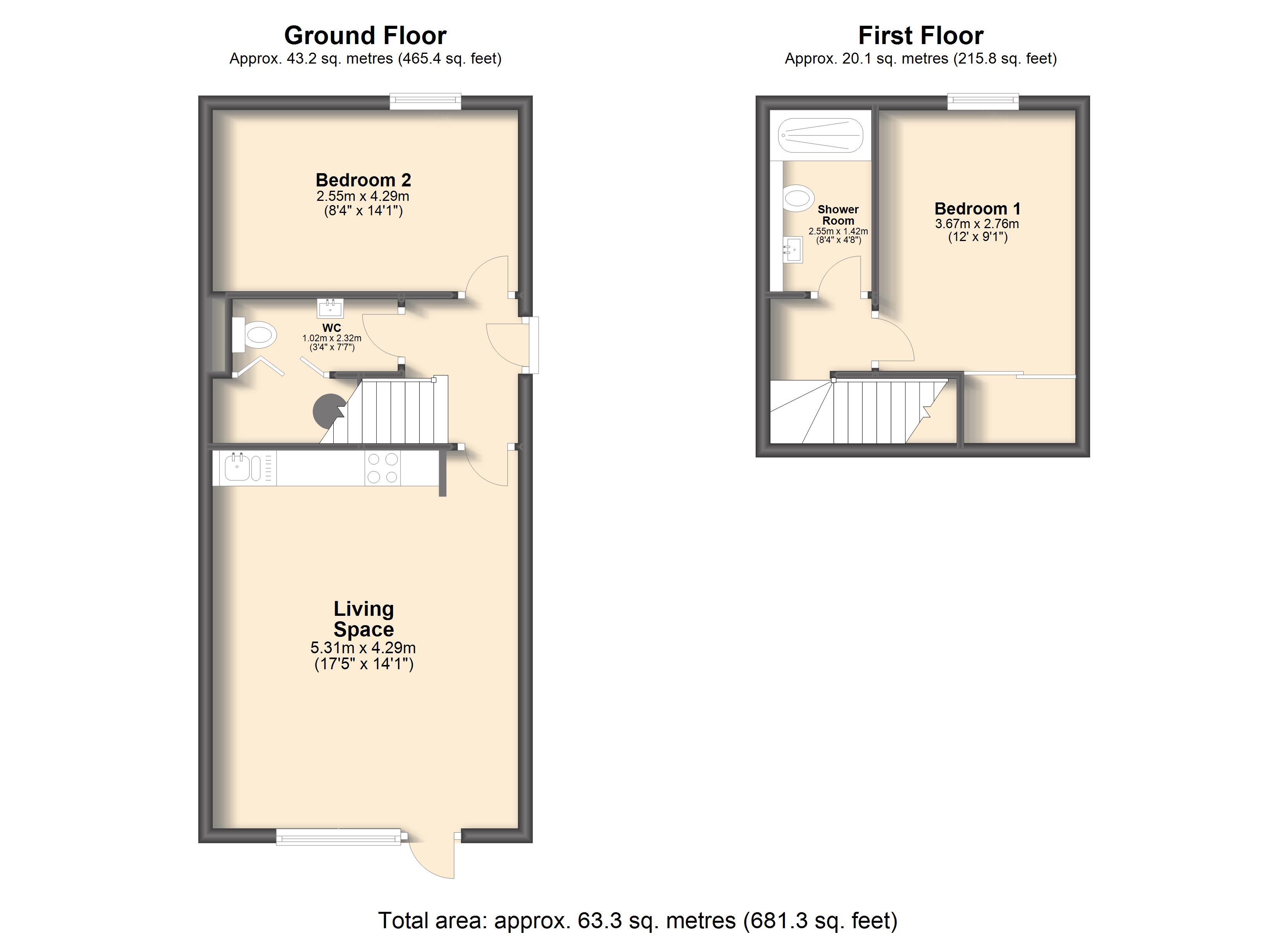 The home offers two well-proportioned double bedrooms arranged over two floors for added privacy and versatility. The one-bedroom unit is located on the ground floor and offers flexible space, making it an ideal home office for those working remotely. The principal bedroom is situated on the first floor and features bespoke, fitted wardrobes for excellent storage.