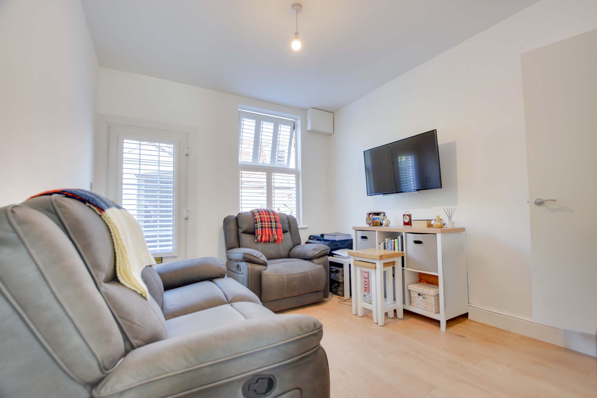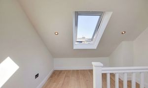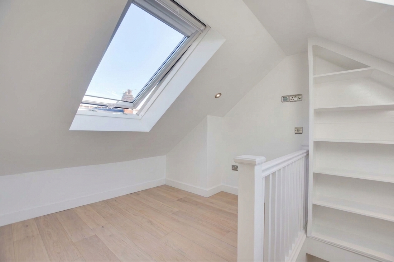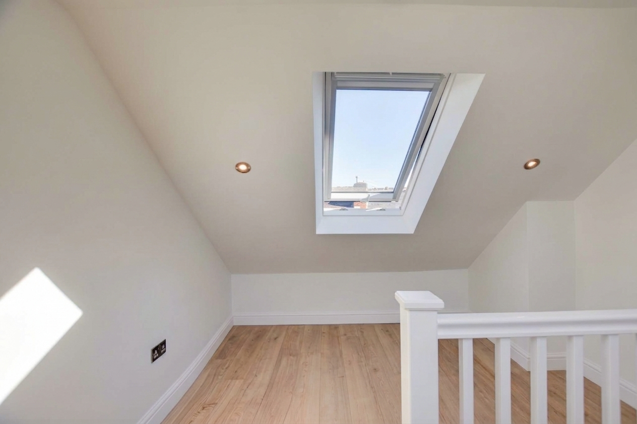 Features double-glazed skylight windows to front and rear elevations, inset ceiling spotlights, TV point, laminate flooring, and radiator.