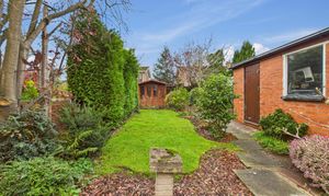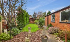 The home enjoys a good offering of outside space. It is approached via a private block-paved driveway with low walling, fencing, and a front garden stocked with mature shrubs. An open arched storm porch leads to the entrance door, and the driveway continues alongside the property where there is the added convenience of an external water tap—ideal for washing muddy boots, cars, bikes, and more. The driveway extends to a detached garage which offers superb storage, and a gate leads through to the south-westerly facing rear garden. This pleasant garden space features a patio seating area, shaped lawn with mature borders, and, towards the far end, a timber-glazed summer house and a greenhouse.