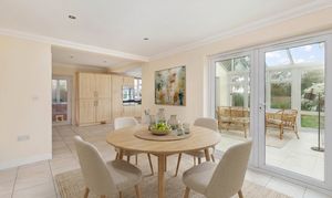 To the front of the property, a dual-aspect open-plan lounge/dining room benefits from an abundance of natural light, with sliding doors leading out to the front garden.